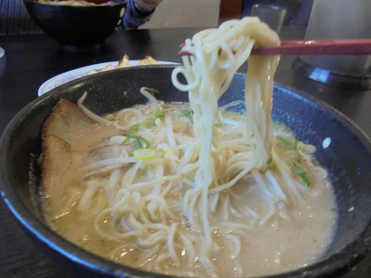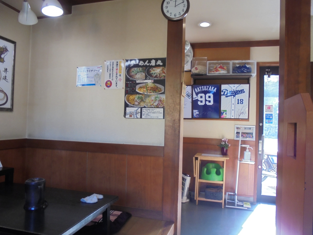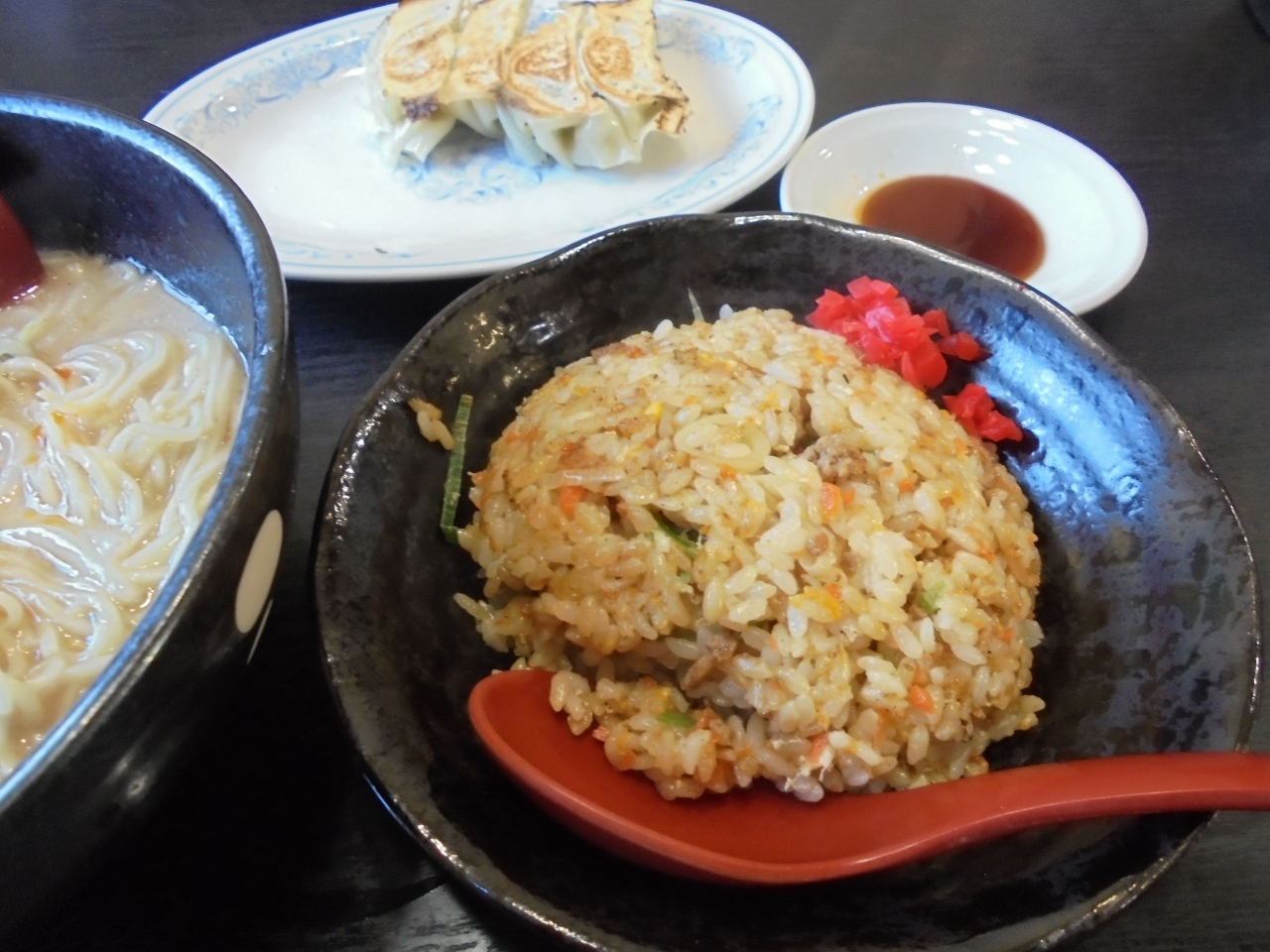 隣の道の駅どんぐりの里が定休日でしたので、こちらのらーめん店でランチをいただきました。レジの前の壁には著名人の色紙が飾られ、ドラゴンズのユニフォームも展示されていました。お店のご主人は熱狂的なドラゴンズファンのようだ。半チャーハンセットには、お好きならーめんをプラス。ラーメンは塩とんこつらーめんを選択。麺は細麺で、麺の量が多い。塩とんこつスープは、くどくなく実にまろやか。好みのスープ味で大正解。麺とスープとの相性も実にいい。おろしにんにくを少し入れて、味変にも挑戦できて素晴らしい。ノーマルチャーハンは半分のサイズといっても結構ボリュームがある。ネチャネチャ感はなく、パラっとした感じで美味しい。追加の手作り餃子は、あんの具材にこだわり感が感じられ、焼き加減が絶妙で美味しかったです。