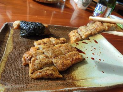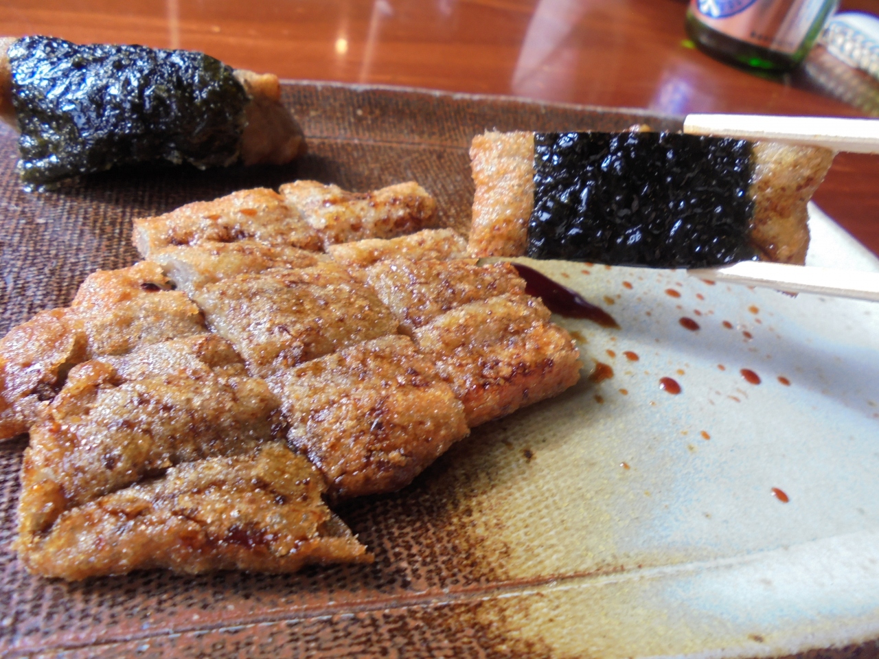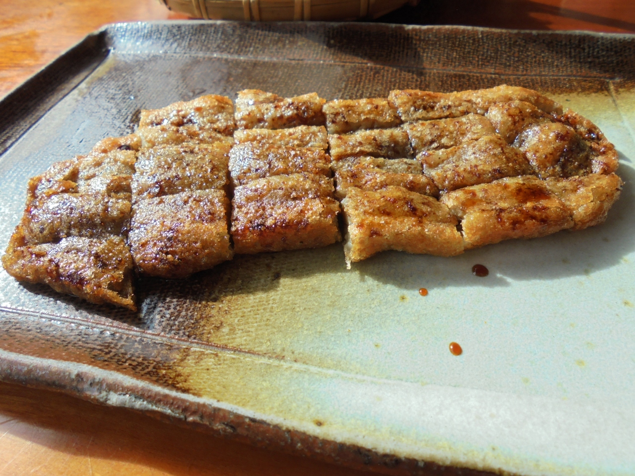 お店の外観も店内も昭和が懐かしいレトロ風な雰囲気の食事処です。小上がりの座敷がほとんどで、一部テーブル席もあります。川の流れる景色を眺めながら食事が愉しめる座敷がおススメです。オーダーしたのは、じねんじょそばの普通盛り、じねんじょのいそべ揚げ、じねんじょのかば焼き、ノンアル。そばは中細麺、そばの殻も入っているので色が濃い。出汁はやや薄め。そばにはコシがあって、じねんじょのとろろと絡んで、喉にスッと入っていくのがたまらない。じねんじょのいそべ揚げは高級な焼き海苔で巻かれて練り物風。トロッとしたじねんじょが実に美味しい。じねんじょのかば焼きは、甘めにカリカリに焼き上げてあり、裏に焼き海苔がくっついている。まるでうなぎのかば焼きみたいだ。一度食べたら、病みつきになるくらい美味しい。特製豆腐の田楽も食べたかったが、業者からの仕入れがないとのこと。うーん、残念。