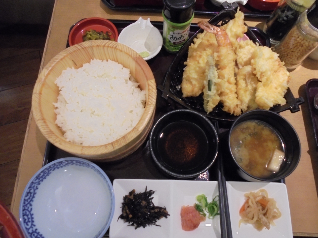 大晦日に入店。天ぷら御膳の小冷そばセットを賞味。ご飯大盛りがミニおひつに。きす天もある天ぷらがサクサクとして美味しい。あおさをかけるとさらに美味しい。そばには山菜がのる。満足度の高い料理だ。残り少ないご飯は卓上のあられと刻み海苔をふりかけ、サービスの出汁でお茶漬け風に。あっさりして、これまた美味しい。うーん、満腹。
