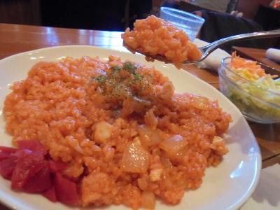 カフェとしては開店時間が正午というのは珍しい。10分前にはすでに数人並んでいる。店内はこじんまりとしている。厨房や壁の上の棚にはジャズのLPがいっぱい。偶然、スピーカーの正面の席に。ボリュームがやや大きめだが、軽快なジャズに満足。品書きは辞書並の厚さのコルク板。オーダーしたのは人気のチキンライスセット。サラダ・ドリンク付きだ。チキンライスはボリュームあり。小さめにカットされたチキンと刻んだタマネギが炒めてあって、ややネチャっとしたケチャップ味のライスとの相性も抜群。イタリアンドレッシングがかかったサラダもいい味だ。コーヒーは自宅で飲むのと同じような味で、濃いめでコク・苦味がある。大好きなジャズを聴きながら、都会の喧騒を忘れるようなひとときを過ごせました。