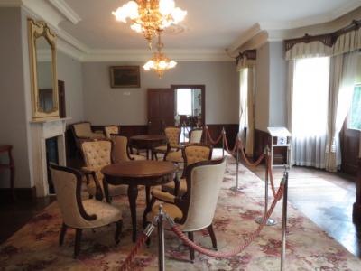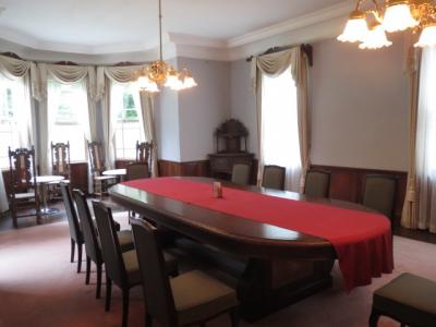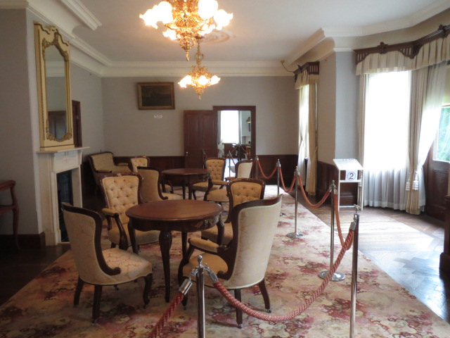 国指定重要文化財で猪苗代湖の湖畔の高台に建っていて、ルネサンス様式を取り入れた洋館です。ドラマや映画などのロケにも利用されています。当時、台所として使われていた入り口から館内に入ります。館内は一階・二階ともに趣向を凝らした部屋がいくつもあって、インテリア・調度品も豪華で贅沢な造りになっています。部屋の一部には椅子に座って休憩できる場所もあって、当時の雰囲気を味わえます。豪華仕様の部屋にいると、時間を忘れてずっと居たくなるような気分になります。