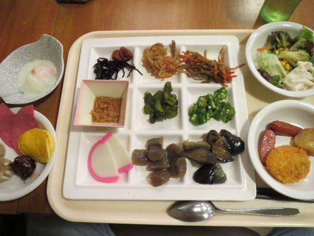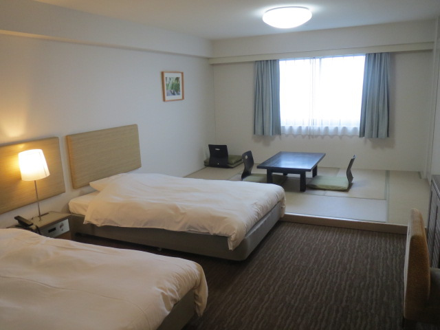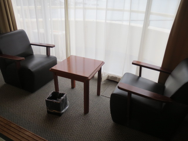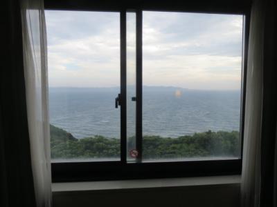 地下一階、地上6階建てのホテル。古い施設だが、清掃が行き届き清潔感はある。ラウンジからは湾の海景色がよく見える。10畳の和室には、中型冷凍冷蔵庫や新しい湯沸かし保温ポットなどの備品が揃っている。バスルームは、浴室・トイレ・洗面台はそれぞれ独立してよさそうだが、狭いので使いにくい。洗面台も低いので腰が辛い。二階の大浴場は内湯も石で囲ってある露天風呂も小さめ。泉質は弱アルカリ性でツルツル感があるのはよい。脱衣場のエアコンは効いているが、風量が弱いので30度のまま。扇風機もないのには閉口した。夕食は、なすとピーマンの料理、ハゼとちくわの天ぷら、寿司・刺身もあって満足度は高い。飲み放題のドリンクはソフトドリンクだけでなく、生ビールやいろいろな地酒が飲めたのはよかったです。