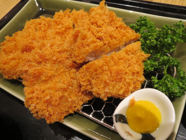 とんかつ和幸と同グループのお店です。10分待って入店。店内は 意外と広く落ち着いた雰囲気、静かなジャズBGMが流れて調度品にも高級感が溢れている。元気で明るい声の女性店員さんは接客レベルが高い。着席のあと、大きな四角い器がテーブルに。千切りキャベツがいっぱい。柚子と胡麻のドレッシングをお好みで。オーダーしたのはロース・ヒレカツ盛り合わせ御膳、味噌汁付き。ご当地の赤だしでしじみ入り。キャベツ・味噌汁とご飯はおかわりOK。とんかつの和幸と同じだ。ヒレカツはコロッケのようなサイズで味がいい。ロースかつも美味。肉は食べやすい厚みで、揚げ過ぎずでちょうどいい。ヒレ肉やロースの旨みが凝縮されたカツに満足。千切りキャベツは新鮮でシャキシャキとした心地よい歯触りで美味 柚子と胡麻ドレッシングとの相性がよく、とんかつとのバランスもいい。ご飯も美味しい。店員さんに産地を尋ねたら、福島県会津のコシヒカリとのこと。なるほど、美味しいはずだ。午後2時近くなっても入店客がいて、ほぼ7割埋まっている。人気のほどがうかがえる。