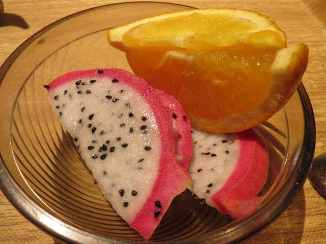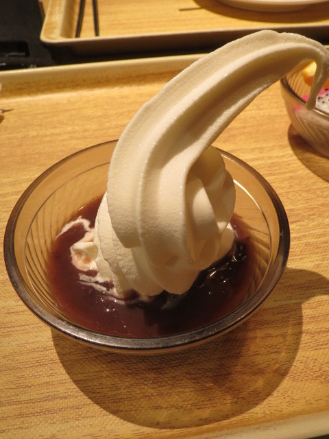 食べ放題のレストランです。ららぽーとがオープン当初はとても混雑していました。でも、最近はランチタイムでも五分ほど待てばすぐ入店できます。オーダーしたのはライトコース、ドリンクバー付き。料理の種類は多いほうではないが、手の込んだ料理が目立ちます。野菜サラダのメニューの中に、おからがあるのが珍しい。早速、他のサラダと共に大きなサラダボウルに。料理の中でも、ブラックカレーが特に美味しい。デザートにドラゴンフルーツやオレンジなどもあって、高級感があります。大好物のソフトは器の下に小豆をたっぷり入れて、ウーン。お腹いっぱい食べられて大満足。