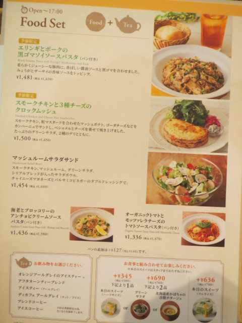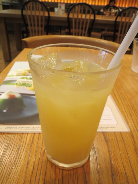 店名はアフターヌーンティーだが、大丸営業時間から開店しています。店内は広く、女性客が圧倒的に多い。ヴォーカルのBGMが耳に心地よい。午前11時を過ぎるとお客が少しずつ増えてくる。おしゃれでゆったりできる雰囲気。冷房がよく効いていて、これからジメジメの梅雨時には涼しいから助かります。オーダーしたのは、信州産ふじりんごジュース税込\890。りんごの甘みが口の中でいっぱい広がる。セットメニューがいろいろあって美味しそう。食事を兼ねた休憩にぴったりのカフェでした。