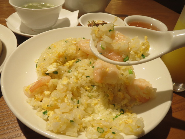 京都高島屋3階にある、台湾料理専門の中華料理店です。ちょうどお昼時で店内は満席状態。運良く、2•3分待ってすぐ店内のテーブル席へ。オーダーしたのは、おすすめセットメニュー。えび入りチャーハンセット\1870。高島屋カードでオレンジジュースサービスがあるのが嬉しい。チャーハンは味が薄めだが、えびが8個も入っている。えびの旨みがたっぷり。えびと卵がチャーハンの味をレベルアップ。小籠包は4コ、中のスープがいい味。生姜との相性もいい。値段は高めだが、美味しさは値段以上。価値あるセットメニューに満足。