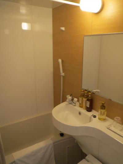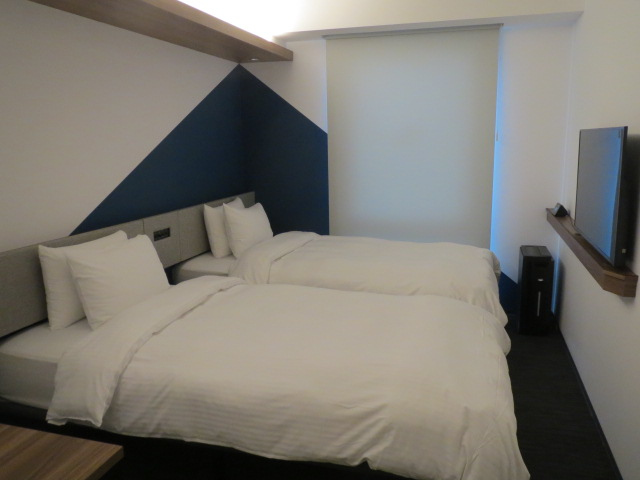 9階建てのホテルで、周囲に喫茶店や食堂、駅構内のコンビニ、温泉入浴施設があって便利。すぐ近くに有料の駐車場もあります。宿泊した部屋は最上階のツイン。二人では狭く感じる。デスクはないのでデスクワークには不向き。壁掛けのテレビは大型で見やすい。時間制限ではあるが、アルコールも含めたウエルカムドリンクがあるのは嬉しい。二階の温泉大浴場があってくつろげます。コスパがいいホテルです。