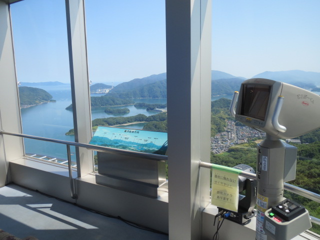 タワーから少し離れているが、無料の駐車場があって便利。ただし週末は車でかなり混みそうです。右手前にタワーを見ながら、展望広場へ。ここまで来ると舞鶴湾一望できる絶景が目の前に広がります。湾内に見える小島が散在する風景も見事。せっかくなので、タワーにも登ることに。タワー展望台入場料は\300。JAFカード提示でポストカードがもらえるサービスが嬉しい。エレベーターでタワーを登ります。展望スペースからの眺めも素晴らしい。タワー内の展望スペースには、有料(¥100)の双眼鏡•テレビ望遠鏡もあって美しい景色を独り占め。降りる際は、階段利用がおすすめ。手作りのお土産を販売するコーナーもあって、新たな発見があるかも。