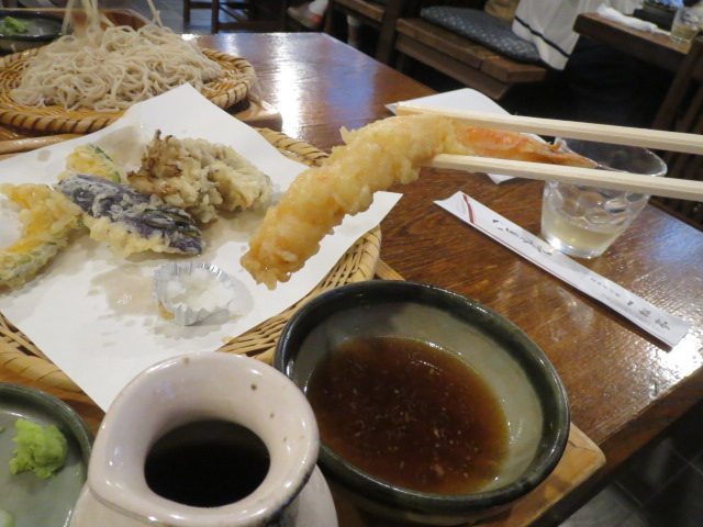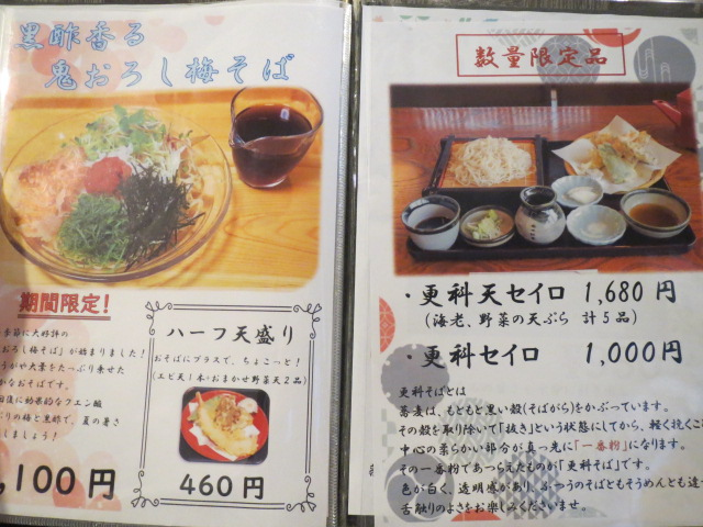 長野道更埴ICを降りて、ゲート出て左方向約3分のところにあるそば専門店です。入口左横にある水車がいい雰囲気。おすすめメニューの天ざるそばを実食。海老と野菜の天ぷら盛り合わせだ。そばは細麺で量が多い。喉越しが良いそばはそばの実の香りがいっぱい。そば汁はやや濃いめ。わさびを入れると、鼻にツーンときてさらに食が進む。天ぷらはサクサクで上手に揚げてある。備え付けのゆず塩と唐辛子で味変も楽しめる。高速を途中で降りて立ち寄る価値は十分あり。