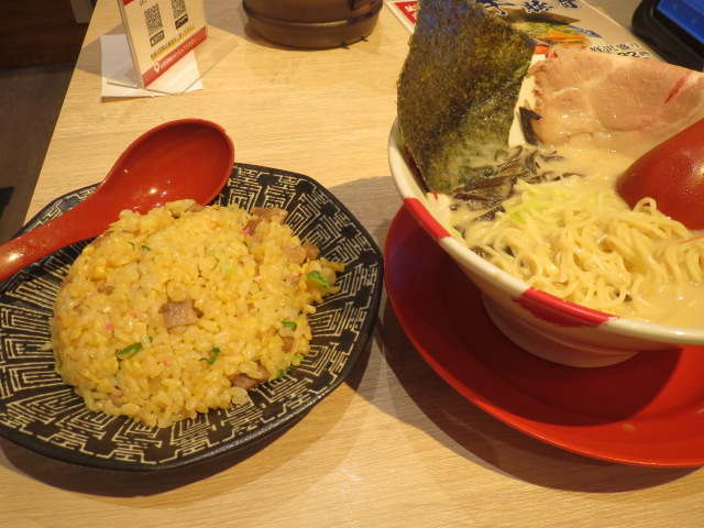 イオンモールのりたけ一階、ガーデンダイニングの中にあるラーメン店です。オーダーしたのは、炒飯セットラーメン。薄切りチャーシュー2枚が丼の縁にかけてある。板海苔と相まって珍しい景色にもなっている。多めの麺は細麺、豚骨スープはあっさり系。細白ネギがさっぱり味を演出。麺とスープの絡み具合もよく、のっかった具材とのバランスも素晴らしい。炒飯はパラパラに炒めてあって美味。旨みが口の中に広がる。食が無意識のうちに進む。コスパが高い炒飯セットラーメンだ。会計はセルフレジだが、店員さんの接客にも満足しました。