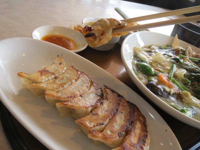 無料駐車場は一階、店は階段を上がって二階に。以前利用した豊山店とよく似ている。静かで落ち着いた店内はテーブル席と小上がりの席、個室まである。ランチ時でもそれほど混まないが嬉しい。静かなBGMが流れ、ゆったりと食事ができる雰囲気だ。オーダーしたのは、選べるひと口餃子ランチ(中華飯)セット。卓上に冷水と温かいお茶入りポットがあって、いいサービスだ。中華飯は野菜がたっぷり。キクラゲや海老も入っている。餡はたっぷりで薄めの味。好みで卓上の酢醤油やラー油・コショーをかけるのもいい。ひとくち餃子は八個もあるから食べ応えあり。具が上品に包まれているて、紫蘇の香りが口の中に広がる。お得感あふれるランチに満足しました。