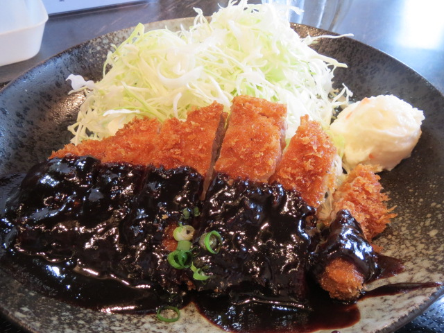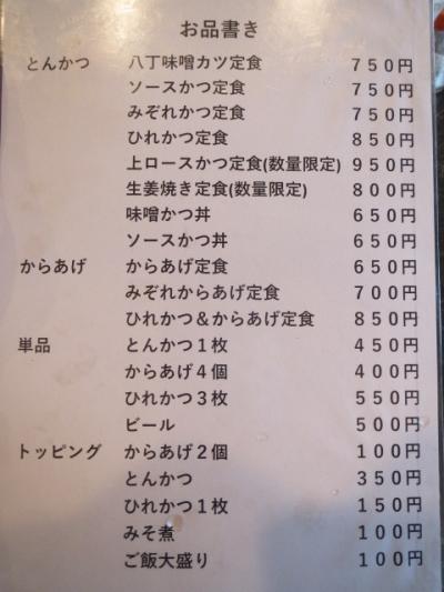 人気のあるとんかつ店でノミネートされるお店です。6席のカウンター席だけの店、親子だけで切り盛りしているようだ。オーダーしたのは八丁味噌カツ定食。厨房では注文が入る度に、タイマーを使って揚げている。カツ定食はキャベツがたっぷり。ポテトサラダが少し、小鉢の漬物、味噌汁はミックス味噌。サクサクっとしたとんかつにやや濃い味の八丁味噌がかかる。適度な脂身。厚みは2センチほど。通常より厚みがある。ポークの旨みが凝縮。ご飯は普通サイズでも大盛りに近い。ちなみに大盛りは別途\100追加。ご飯の味もいい。実にコスパがいいトンカツ店でした。