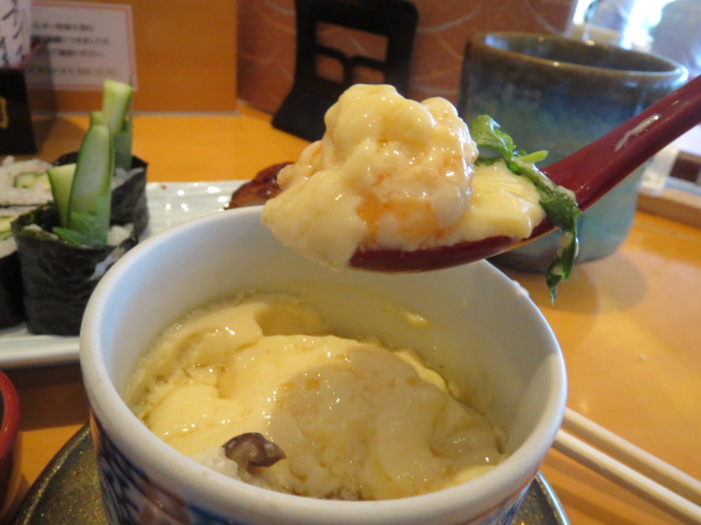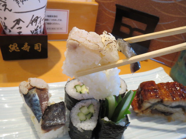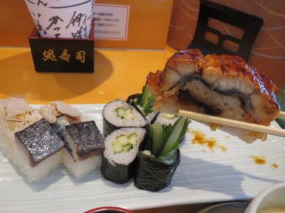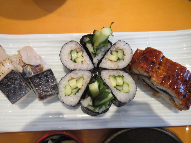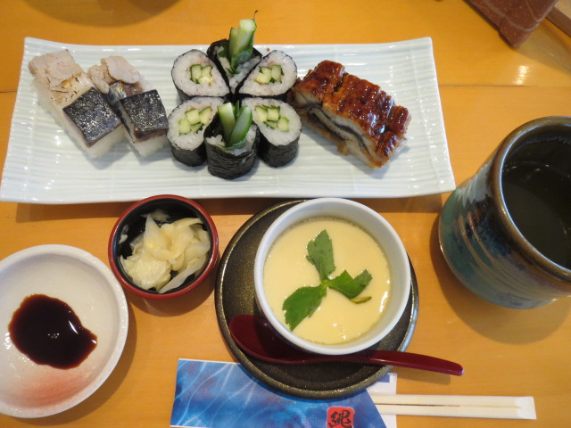大阪高島屋の8階にある寿司店です。それほど敷居は高くないので、気楽に入店できます。オーダーしたのは、平日セット炙り鯖と鰻の棒寿司(梅しそ胡瓜巻入)茶碗蒸し付き。鰻の棒寿司はボリュームがあって食べ応えがある。鰻の旨みがたっぷり。茶碗蒸しは出汁が美味しい。銀杏、小エビ、かしわ、椎茸などの具材が色とりどり。炙り鯖も美味。店員さんの接客が良く、リーズナブルな平日ランチセットに満足しました。