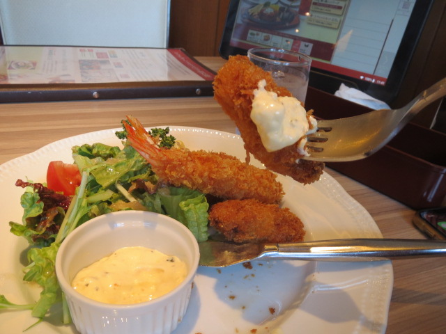 店名が違うとは全く気付かずに、久しぶりに入店。偶然、この日から「ロイヤルキッチン」から「ロイヤルホスト」に。品書きをよく見たら、いつものランチメニューがない。メニューもかなり変わってしまっている。店員さんのユニフォームもよく見ると違うように感じる。店内の雰囲気は以前とほとんど変わらない。オーダーに少し戸惑ったが、ミックスフライをオーダー。お皿の上には、牡蠣フライ・天然海老フライ・紅ズワイ蟹のクリームコロッケ・野菜サラダが乗る、何とも賑やかな料理。味もいろいろと楽しめるからお得感がある。次回はドリンクバーも利用してみたい。