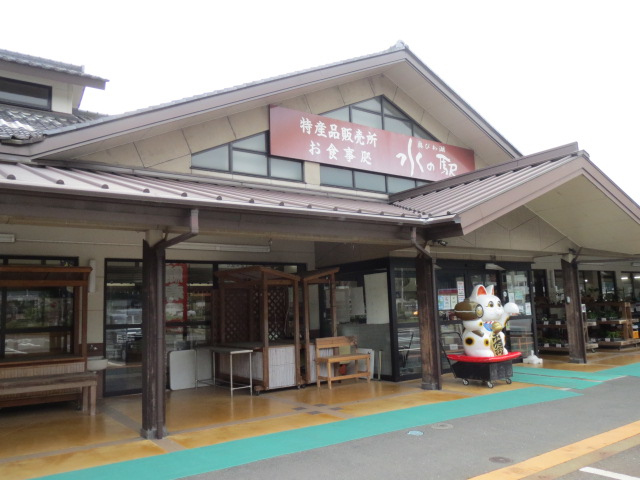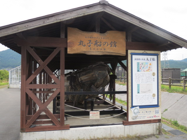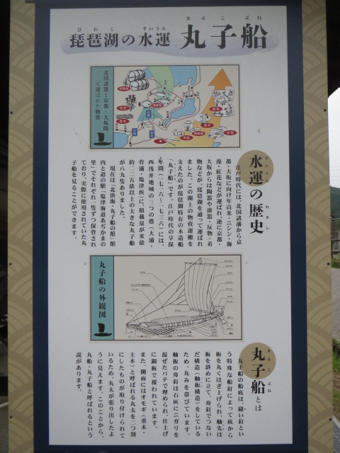 「あぢかま」とは、聞きなれない言葉です。万葉集で塩津を指すまくら言葉、琵琶湖の水辺で冬を越す鴨に由来しているのだそうです。店内ではとれたての地元の農産物や加工品を含めたお土産も多数扱っています。買い物がしやすいように、商品の展示にも工夫がなされています。特に、おススメしたいのは施設の裏側にある丸子船の展示です。丸々一艘の船が屋根付きの野外展示に。船首から船尾まで手に取るように間近にみることができます。江戸時代の琵琶湖の水路交通として物資運搬として活躍した船を眺めると、まるで江戸時代にタイムスリップしたかのよう。迫力も十分で見ごたえのある道の駅です。