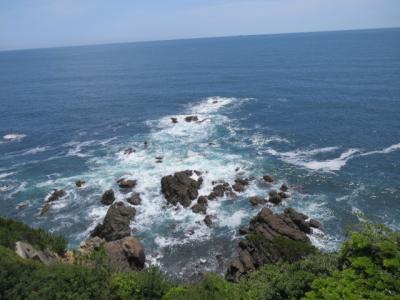 この灯台の前身は明治時代は八角形の木造でしたが、戦後の昭和に現在の四角形のコンクリート造りの灯台に建て替え。日本の灯台の中でも四角形の灯台は珍しい。映画「喜びも悲しみも幾年月」の舞台にもなった灯台です。灯台の中を通って上まで登れるのも嬉しい。登る途中、壁には灯台の歴史や映画のロケの様子を写真で紹介されています。灯台の上からは、360度見渡せる海の景色がダイナミック。岬の岩にぶつかる白い波の音が耳に心地よい。素晴らしい海絶景に魅了されました。