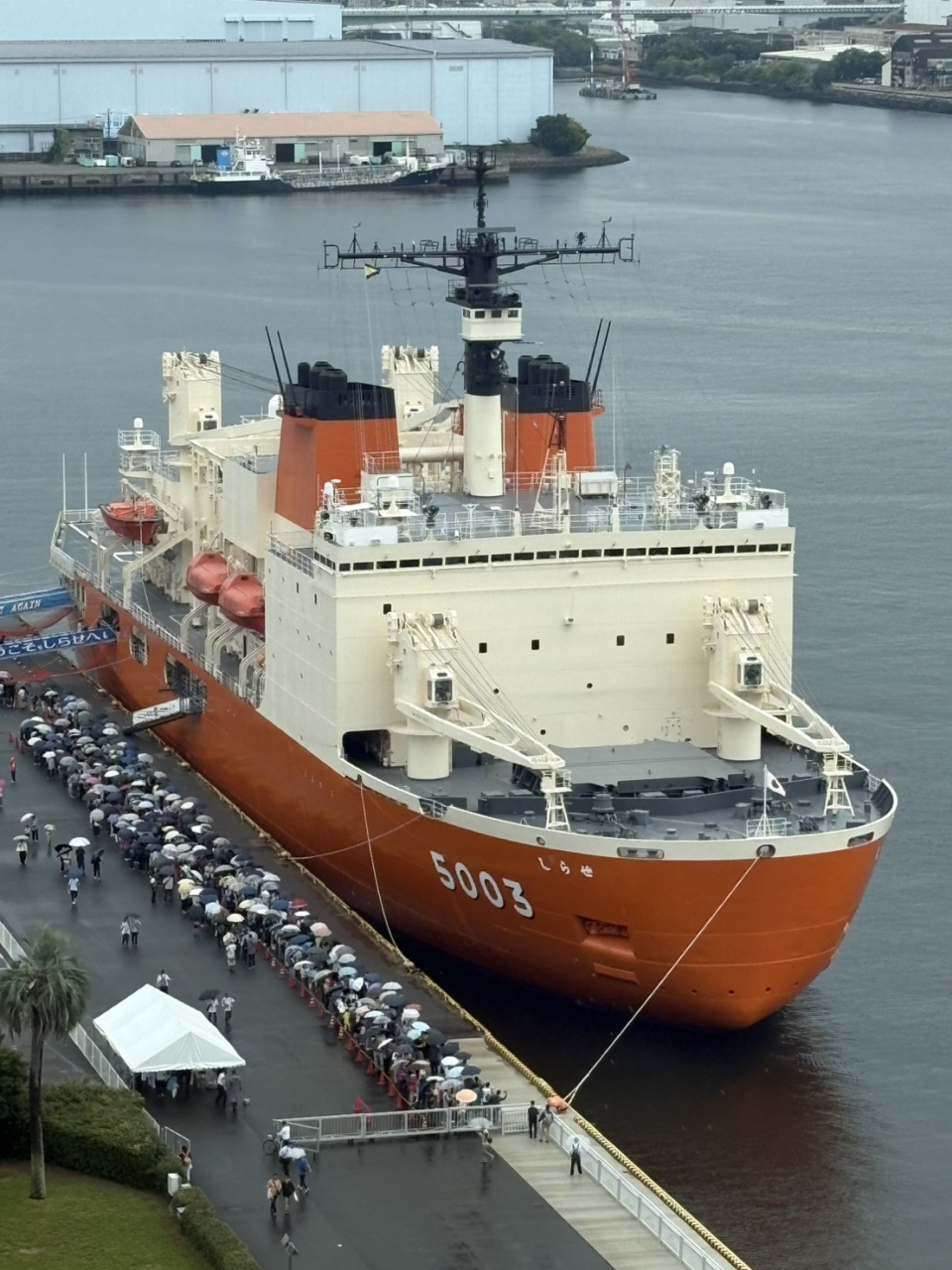 名古屋港に寄港している南極観測船しらせを見るために訪れました。雨天にもかかわらず、すごい人でいっぱい。しらせの外観を見るだけにして、南極観測船ふじに入船。厨房や床屋、診療室、寝室、娯楽室などには乗組員のリアルなマネキンが今にも動き出しそう。南極の自然や探索車、艦上ヘリコプターなど、見どころいっぱいです。