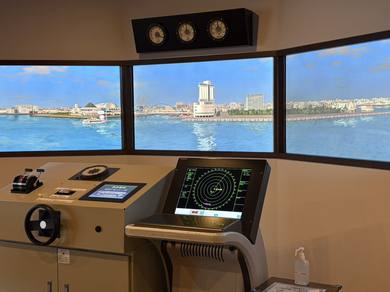 工夫された展示で分かりやすい 名古屋港操舵シミュレータで操舵体験ができます