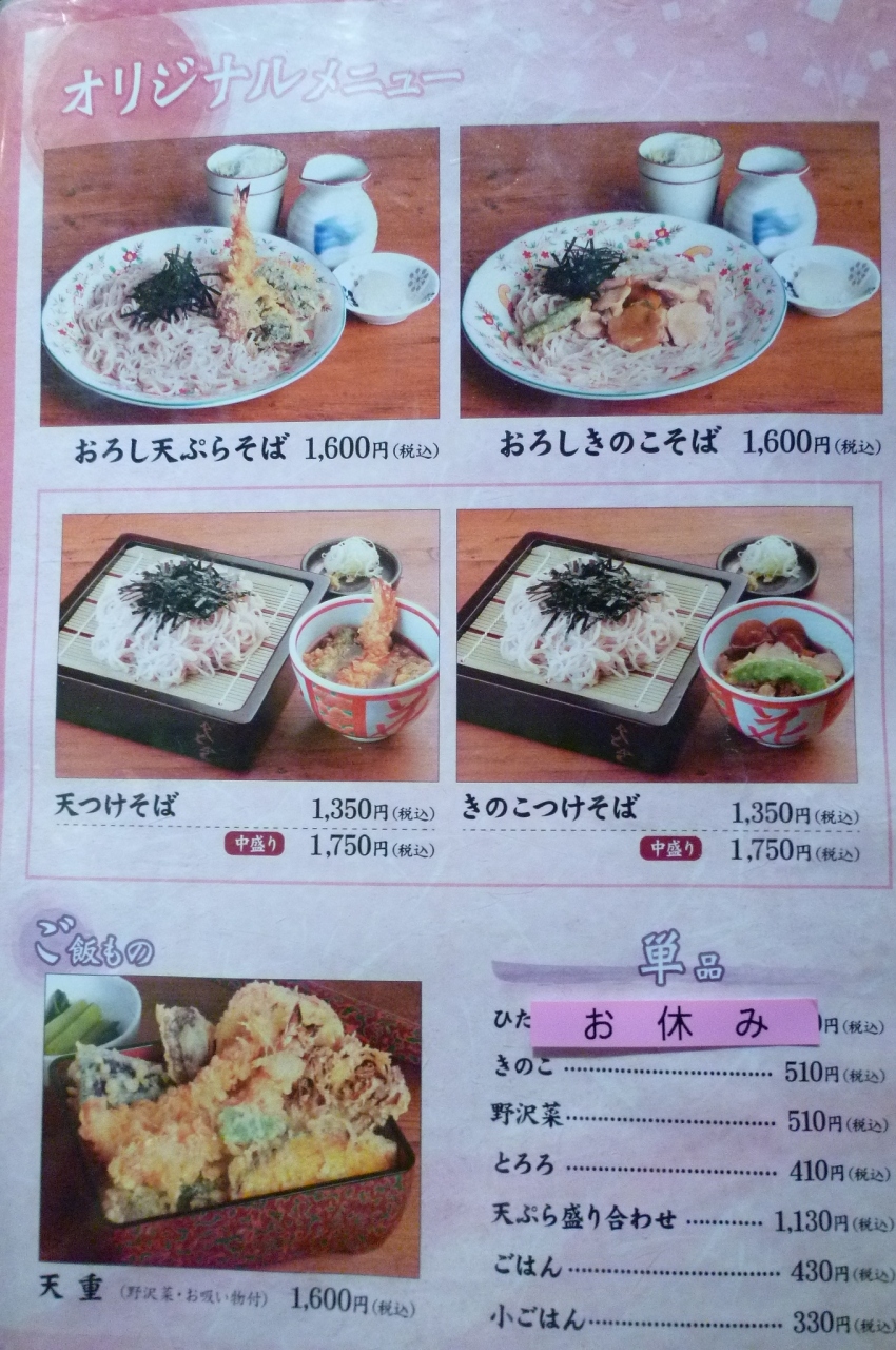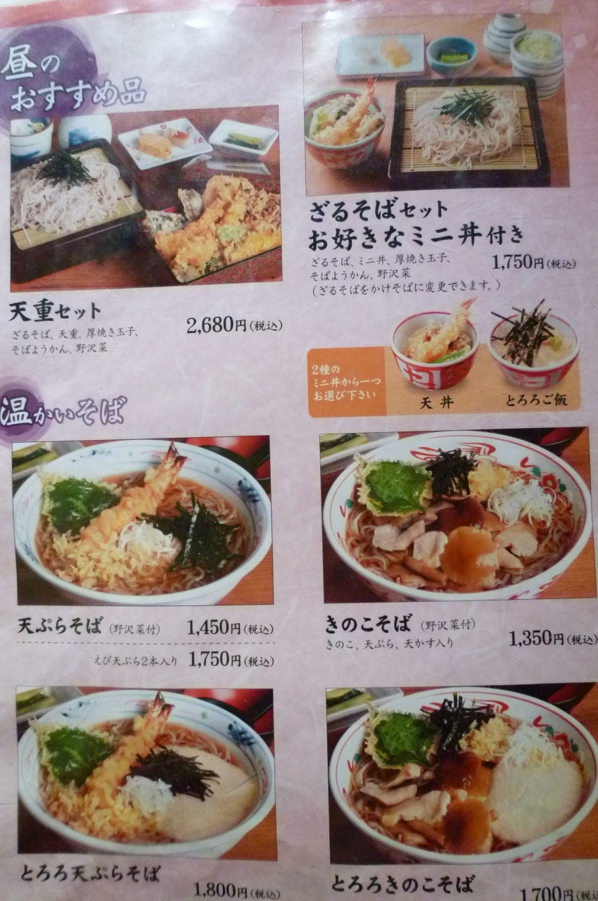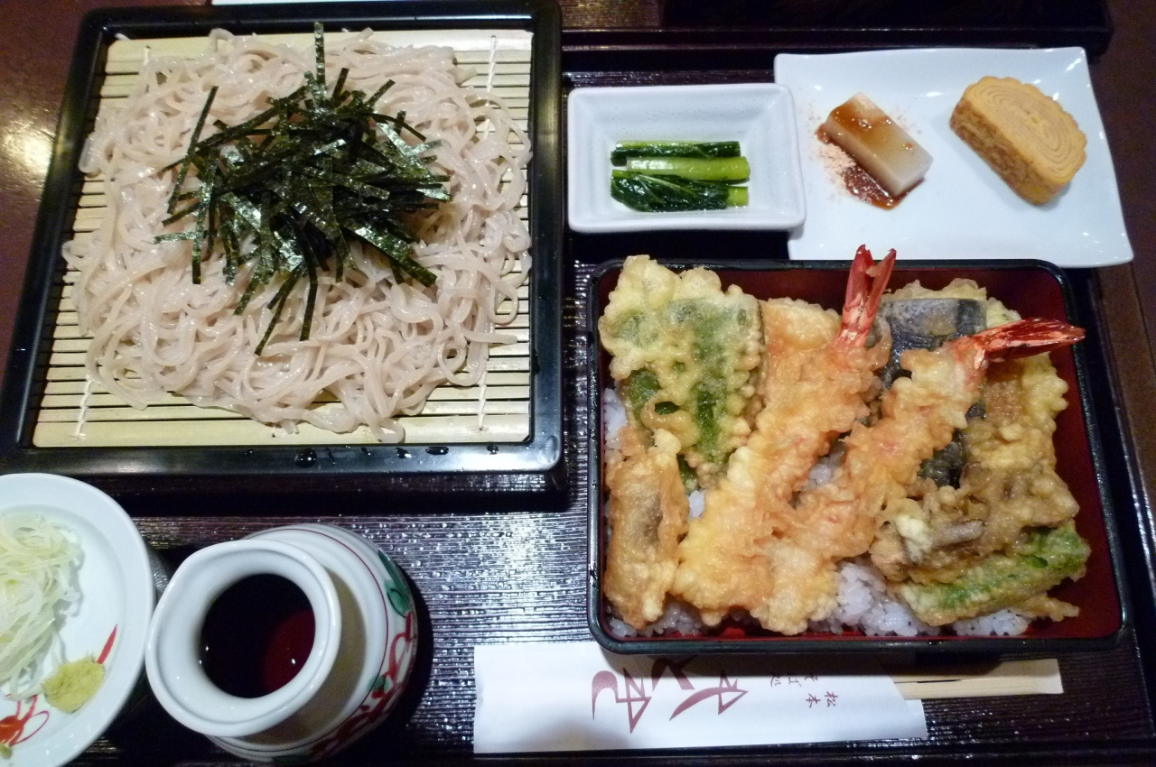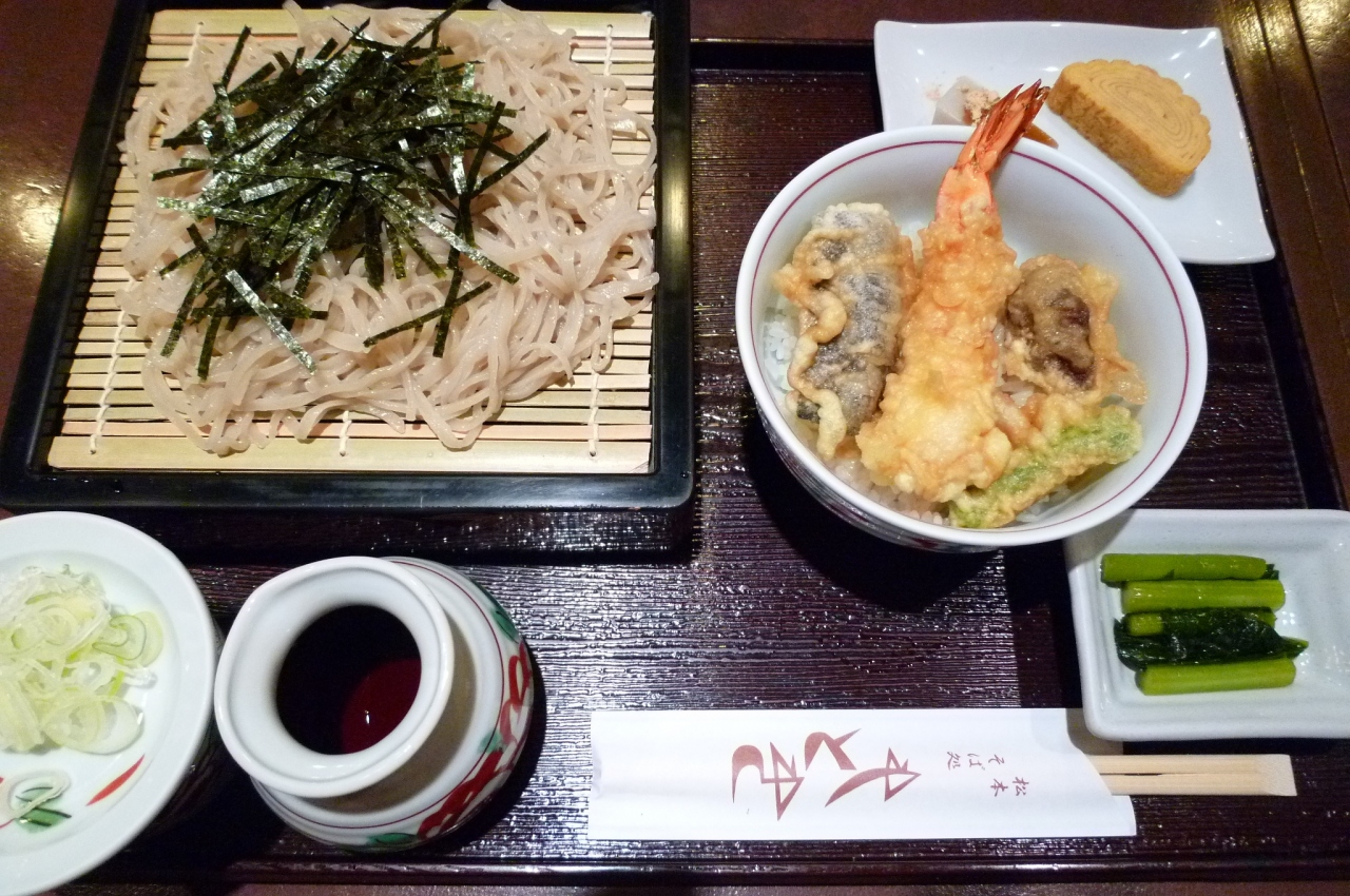 10分ほど待って入店。店内はBGMがなくて意外と静か。カウンター席が3席と2・4人がけのテーブル席。湯茶サービスのタイミングがいい。オーダーしたのは昼のおすすめ品、天重セット\2680 税込。ざるそばは蕎麦殻が少ない手打ちそば。細麺でコシが強くいい味。天重はご飯の炊き具合が良く、一粒一粒が感じられる。野菜ときのこの天ぷらと新鮮な海老の天ぷらが乗っかっている。とても美味しい。値段が少し高めだが、値段以上の価値があるメニューでした。- 旅行時期