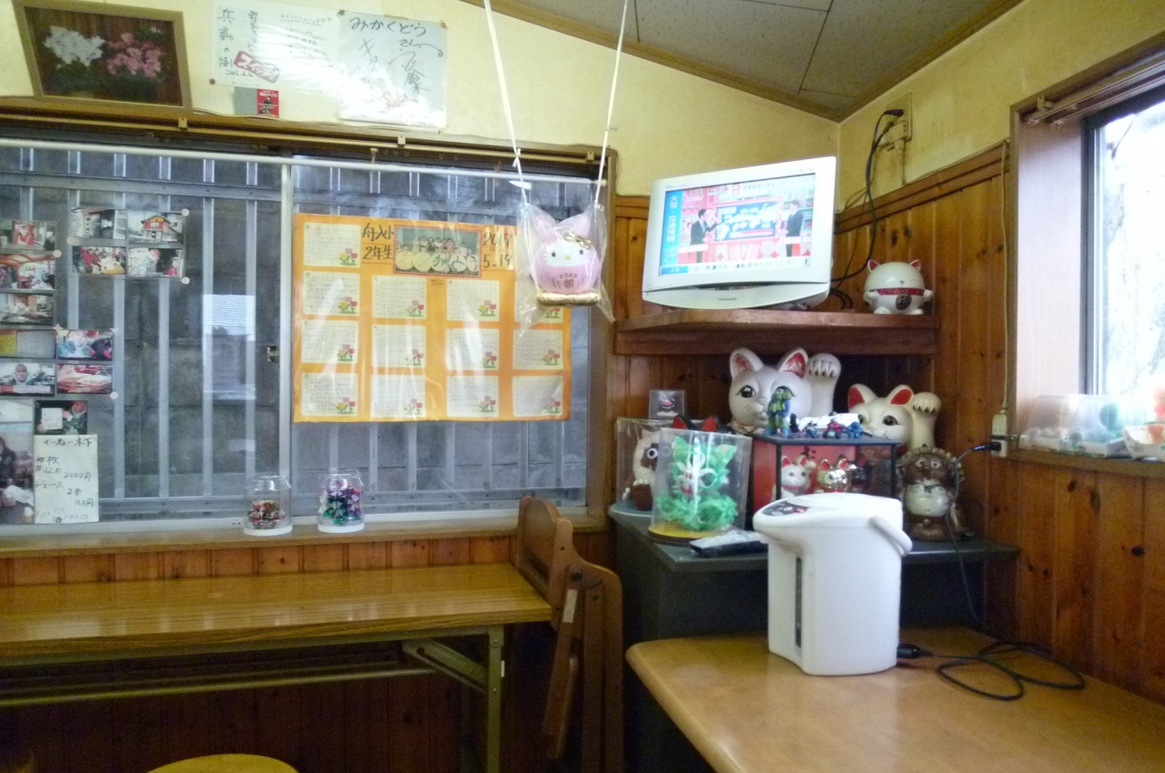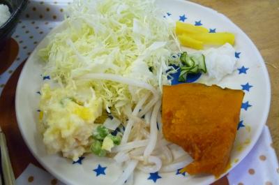 名古屋市に近い場所にあるお好み焼き&焼きそばの食堂です。創業は昭和50年頃。店内は創業当時そのまま。レトロ感たっぷり。値段もそのまま。お好み焼きも焼きそばも各¥100。定食は¥200。驚くばかりの値段にビックリ!オーダーしたのは定食と焼きそば。合計¥300。ポテトサラダに煮かぼちゃ、キャベツ・漬物、豚汁・ご飯も。焼きそばと一緒に食べるとお腹いっぱいに。手作りの味わいに満足。近隣の小学校の生徒たちからのお礼メッセージが飾ってある。地域に愛されている食堂です。