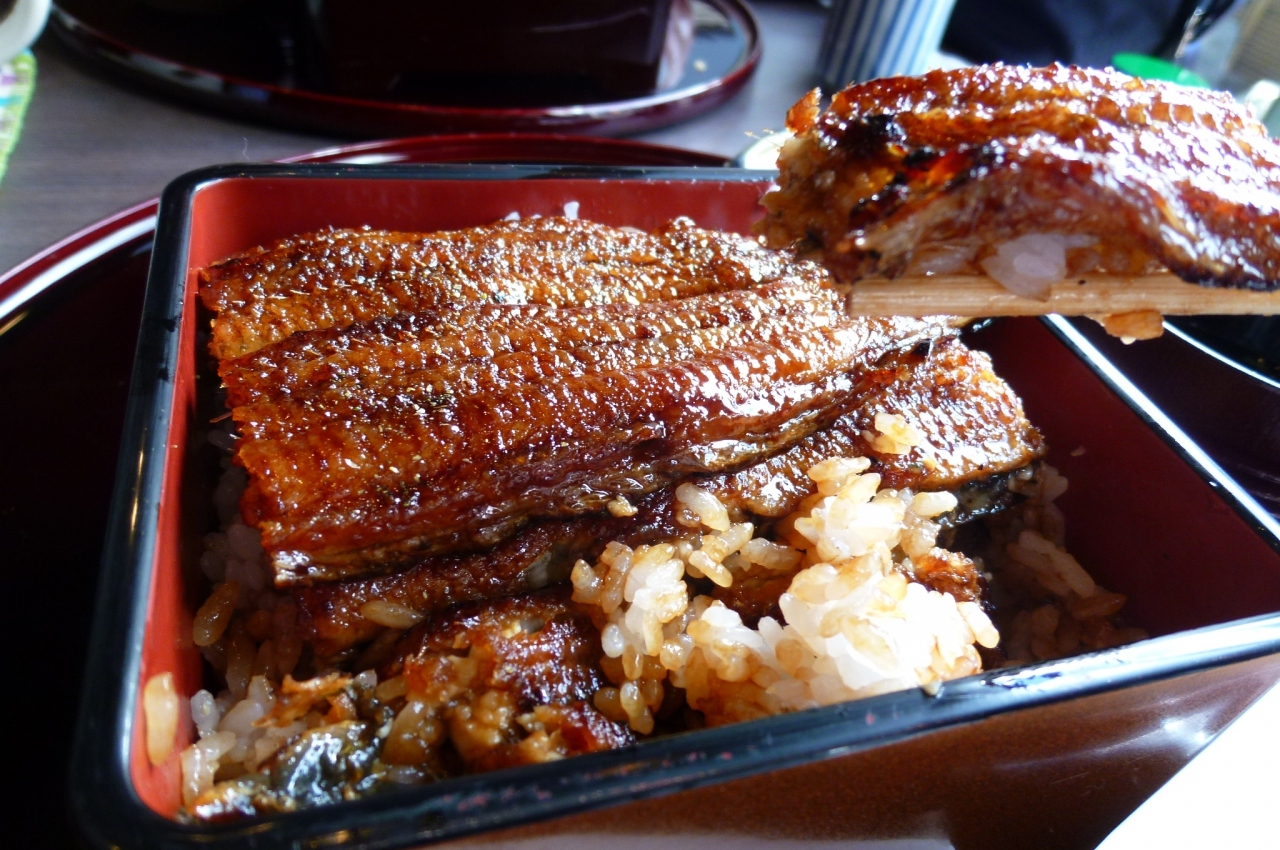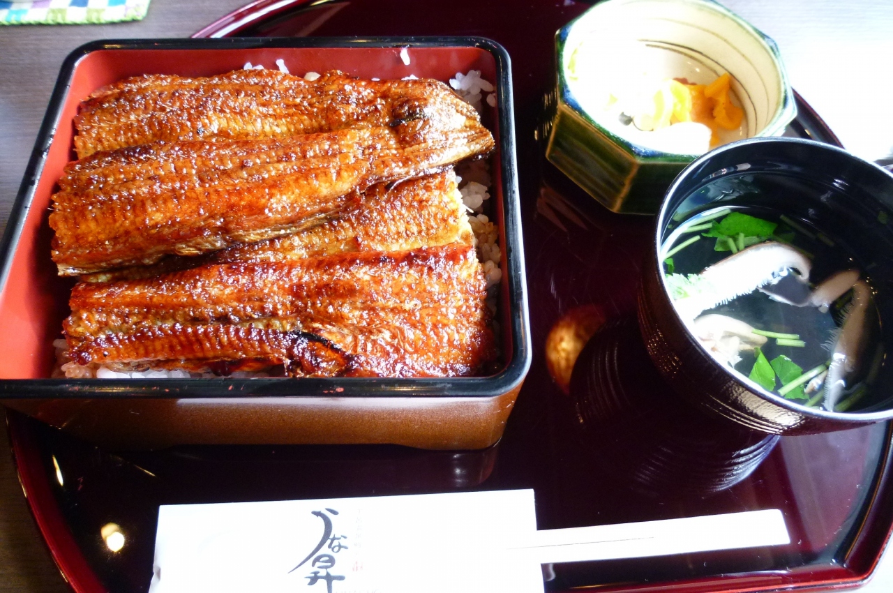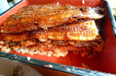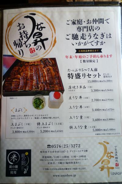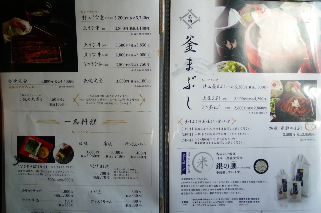 昨年10月に岐阜県のうなぎ名店で1位を受賞したお店です。店内はシックな色調で統一されていて、ミニ和風庭園もあって落ち着いた雰囲気です。オーダーしたのは特上うな重。うなぎの肝入りのお吸い物も付いています。こんがり焼かれたうなぎが一本半、ご飯の上だけでなく、中にもうなぎが挟まっています。皮はパリッとしていて、中はジューシー。うなぎの旨みがたっぷり。ご飯の粒がしっかり感じられるように上手に炊かれています。重箱にギッシリ詰まっていて、かなりのボリュームに大満足。家内は飛騨牛ひつまぶしをオーダー。これも味わい豊かな絶品。鰻が苦手な人と一緒に利用しても安心できるお店です。