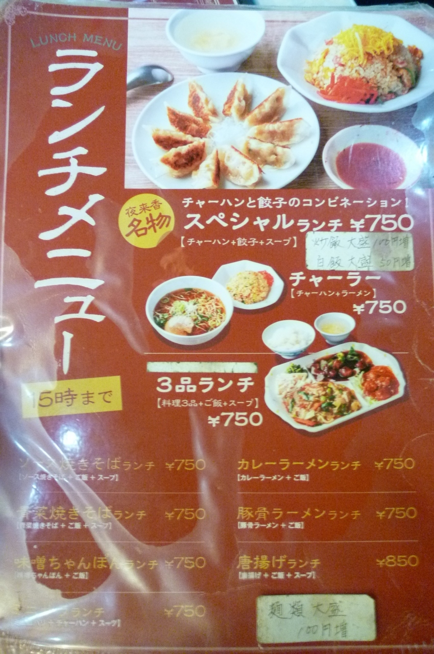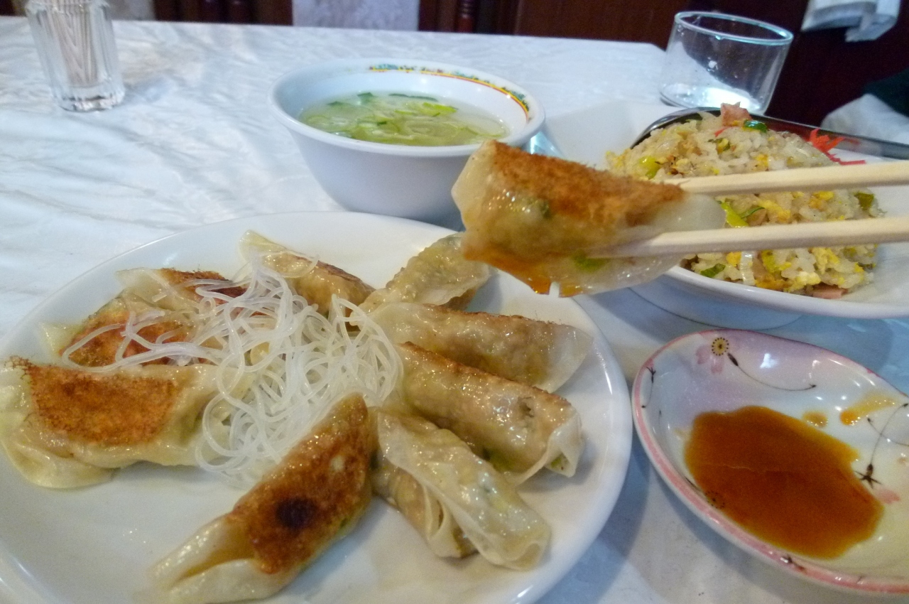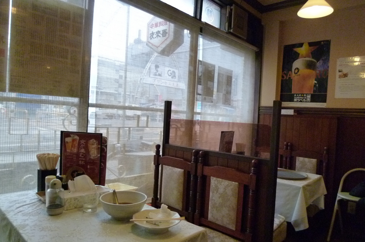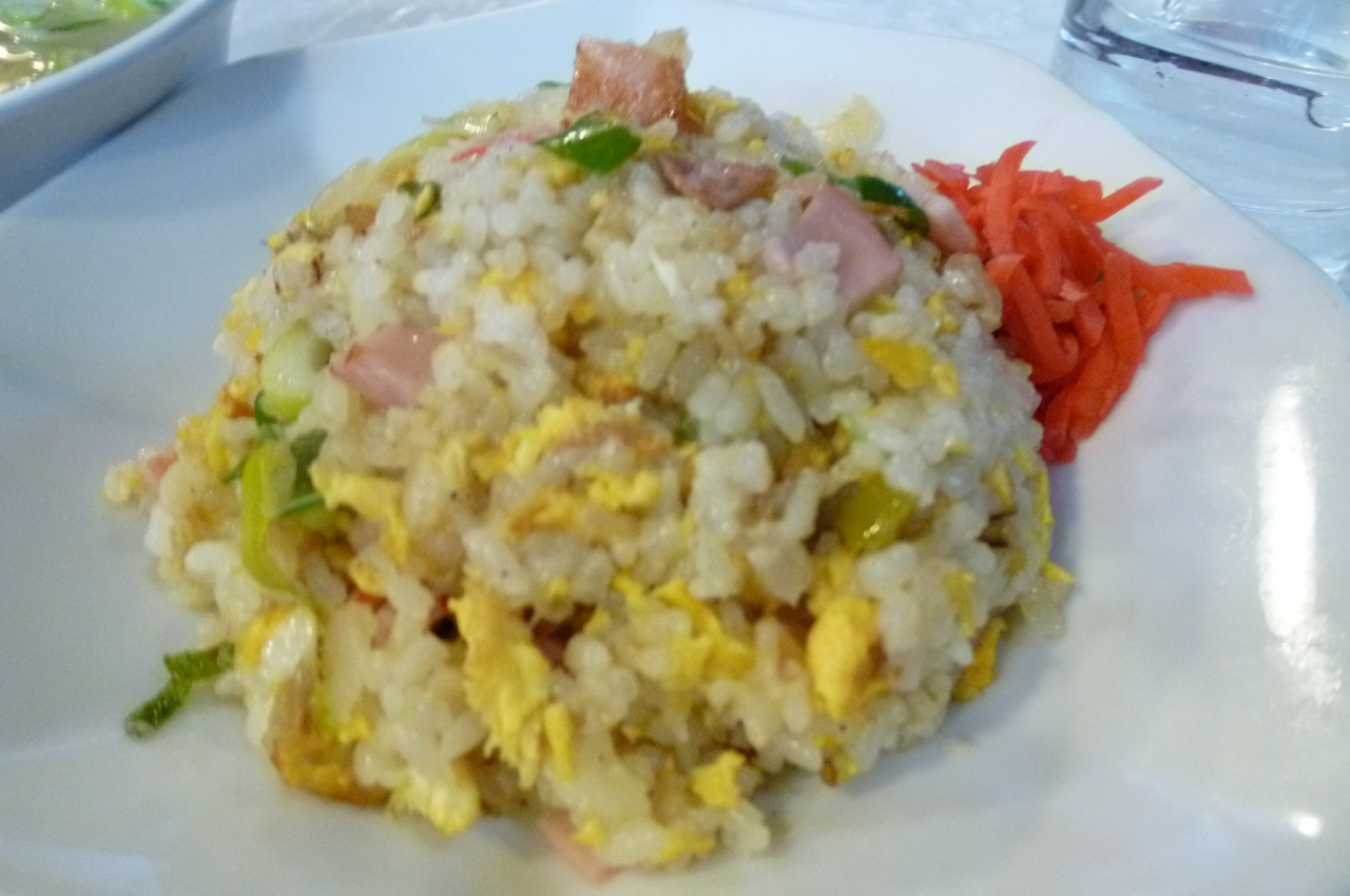 古くからやっている町中華店。ビールのポスターが壁にいっぱい張られた店内はレトロな雰囲気がいっぱい。女将さんが話好きで気配りと接客がいい。水サービスもタイムリー。オーダーしたのはスペシャルランチ。餃子がお皿に丸く10個並ぶ。中央は酢味の春雨。小振りで薄皮、皮はパリッパリッ。絶妙な焼き加減だ。具の旨みが抜群。チャーハンはごく普通の感じ。玉子スープも付いてこの値段はかなりリーズナブル。