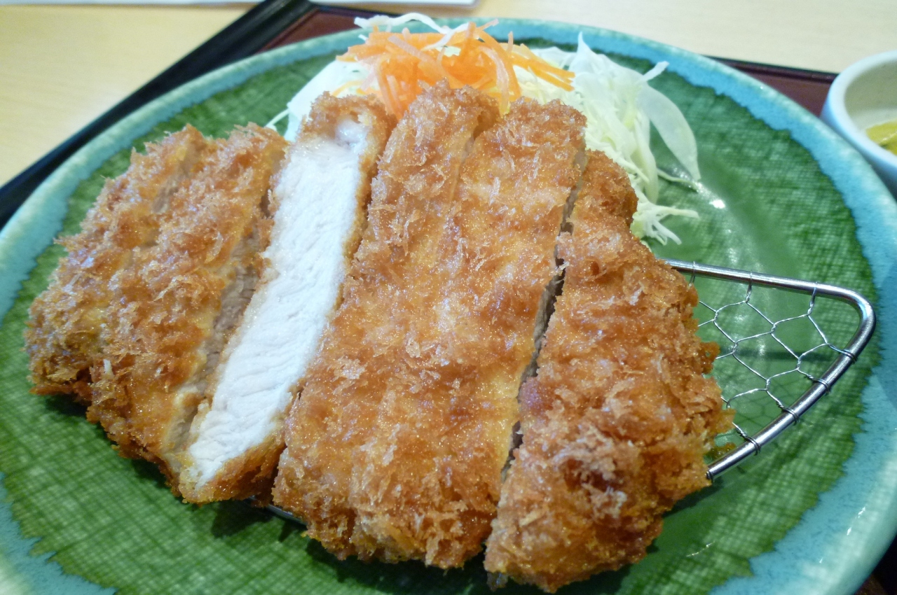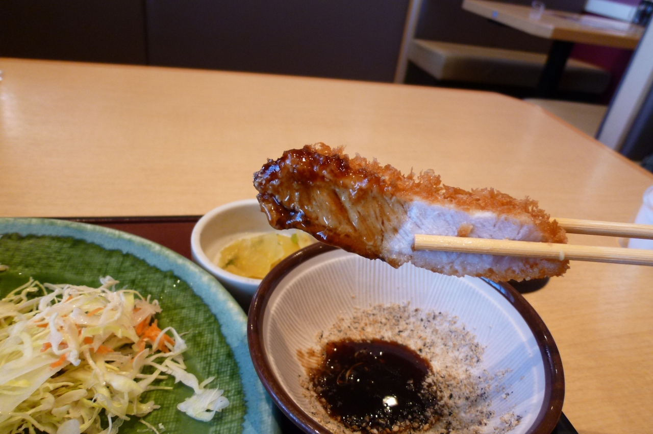 ステーキ宮やにぎりの徳兵衛などのコロワイド(アトム)グループのお店です。お店の周囲には30台ほどの駐車スペースがある。日曜日午後1時頃入店。店内フリーWi-Fiあり。心地よいBGM。店内は7割がたのお客で埋まっている。13時30分過ぎに半分ほど空いてくる。注文はタブレットで。オーダーしたのは、ロースかつ定食(中)150g 。とんかつの厚みは2cm近い。脂身が少なくギュッとしまった食感が素晴らしい。衣は薄めでカラッと揚げてあり、肉の旨みが凝縮されている。二種類あるソースをお好みで。選んだ麦ご飯は素朴な味がして体にも良さそうだ。キャベツ・味噌汁・ご飯がおかわり無料なのも、腹ペコな人にはもってこいのサービス。