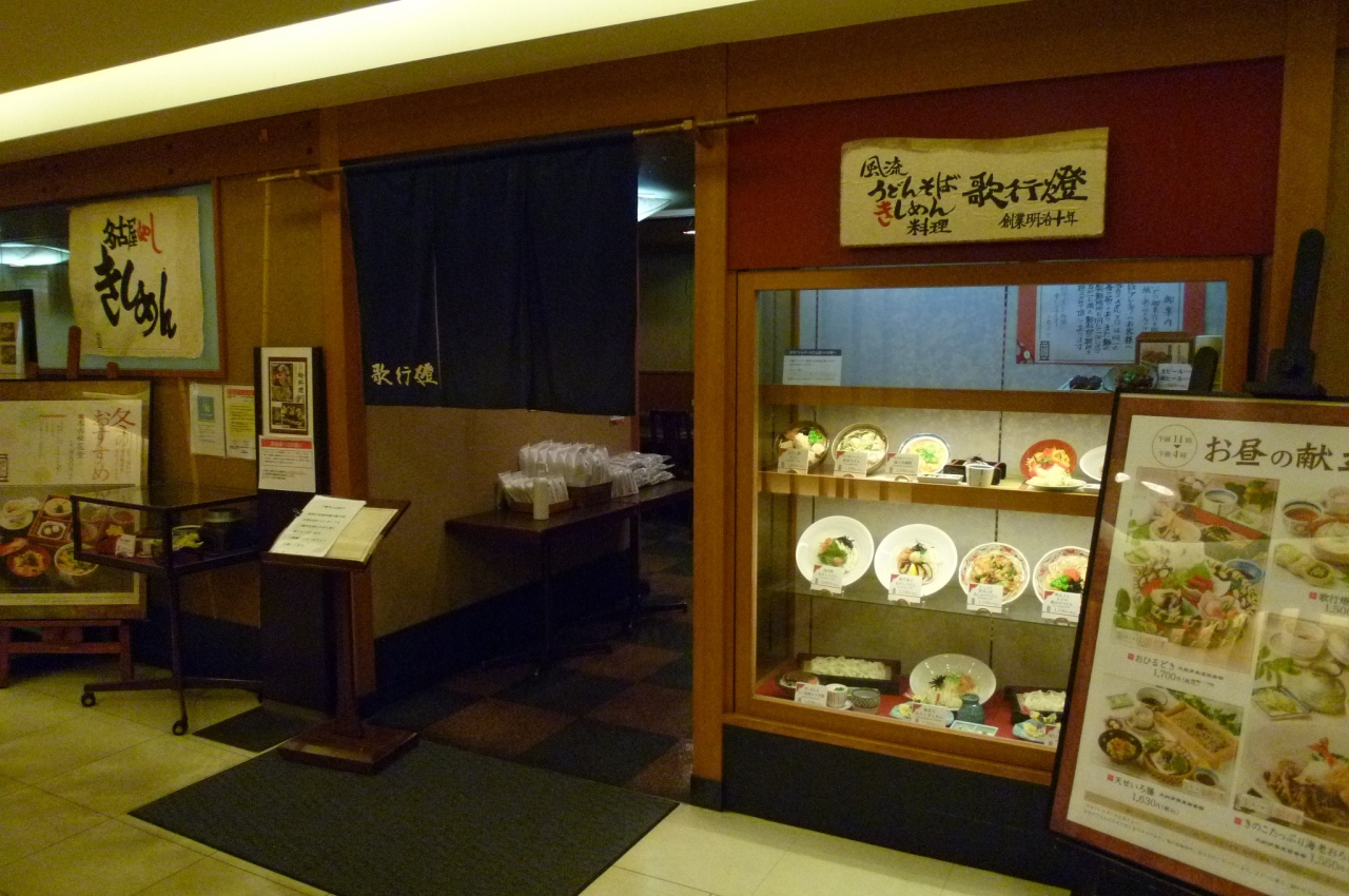 名鉄百貨店の9階にあるレストランです。開店と同時に入店。店内は意外と左奥まである。BGMはないが、落ち着いて食事が楽しめる雰囲気。店員さんは親切丁寧に対応してくれるのが嬉しい。オーダーしたのは、お昼の献立の歌行燈。ご飯にゆかりがかかって、ご飯の旨みが引き立つ。漬物の器にしぐれ煮。本店が桑名にあるから納得。麺はそば、うどん、きしめんから。温かいきしめんはコシがあってのど越しもいい。きしめんは古くからの名古屋名物だ。つゆに入れる薬味にバラエティーがあって、好みで入れられるのがいい。海老、なす、青紫蘇のてんぷらはサクッサクッの食感。風味を損なわないように上手に揚げてある。とろとろ玉子の茶碗蒸しも付いてコスパが高い。次回は気になったランチメニューのおひるどきを食べてみたい。