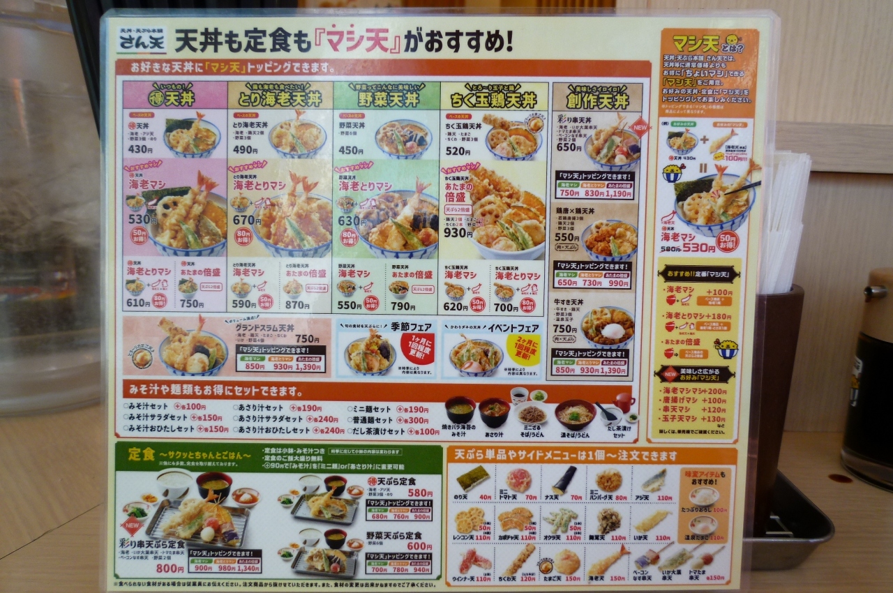 比較的新しい天ぷら・天丼のファーストフード的なお店。券売機でとり海老天ぷら定食、海老鶏マシを購入。ご飯大盛無料なのが嬉しい。天ぷらは、ししとう、かぼちゃ、とり天、エビ天、レンコンが勢ぞろい。どの天ぷらもサクサクとしていて美味しい。ご飯に 備え付けののりたまふりかけをかけて、一層ご飯を美味しくいただけるのにも満足。このボリュームをリーズナブルな値段で食べられるとはかなりコスパ高い。