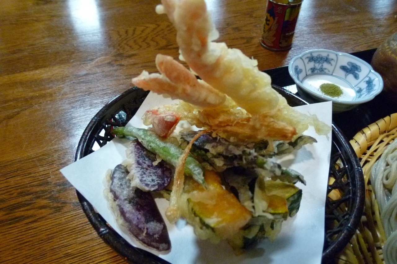 宿の中にあるそば専門のお店です。宿泊して利用。店内BGMが耳に心地よい。オーダーしたのはエビ天ざる。そばは大盛りで。 蕎麦は細麺、色はグレー、蕎麦の殻は細かく粒々は見えない。滑らかで喉ごしがいい。大盛りにして大満足。エビ天には野菜天も付いて豪華。最後はご飯柔らかめのミニ天丼でいただく。ご飯はおかわりOKなのも嬉しい。