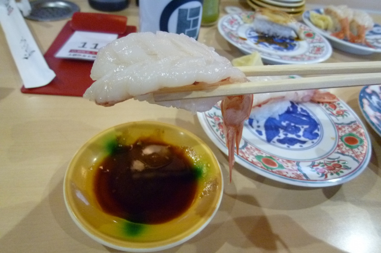国道8号線と18号線の交差点すぐ脇にある寿司店です。初めての入店。昼過ぎの遅い時間帯だったので、店内のお客さんは少なかったです。おひとりさまなので、カウンター席へ。タブレットでオーダー。とりあえず、穴子握りを注文。甘たれをかけて。ふわふわの穴子。口の中で穴子の旨味が広がる。次は、特大赤えび。ボリュームある身がプリップリッ。はまち、炙りえびマヨ、やりいか、つぶ貝とオーダー。新鮮な海の幸を満喫。特に、気に入った一品は炙りえびマヨ。炙りによって、こんがりと焦げめの付いたえびとマヨネーズ。それぞれの旨味がバランスよく引き出された握り。もう一皿追加して食べてしまいました。コスパの良いお値段にも大満足でした。