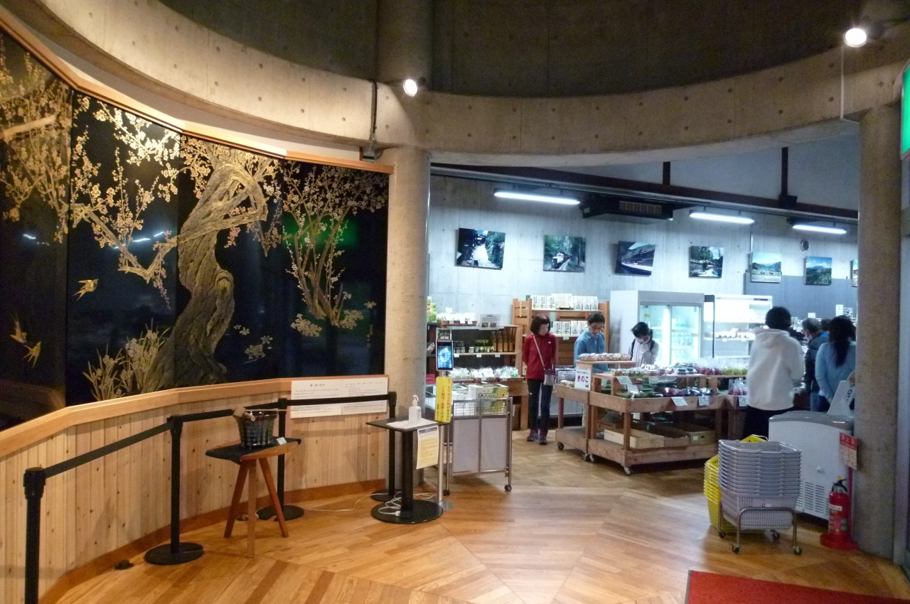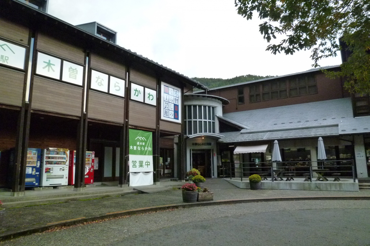 国道19号線沿いにある道の駅です。道の駅としては広くて、施設も充実しています。木曾くらしの工芸館は必見の価値あり。木曽地方の自然の恵みを生活道具に生かした伝統工芸品や漆器類は高級感があります。展示は一階だけでなく、二階にも。展望回廊になった二階から一階を見下ろすのもおススメ。長野冬季オリンピックで活躍した日の丸飛行隊が取ったメダルも、ここ木曽で作成されたもの。活躍当時のビデオも上映されていて、当時の感動がよみがえってきました。