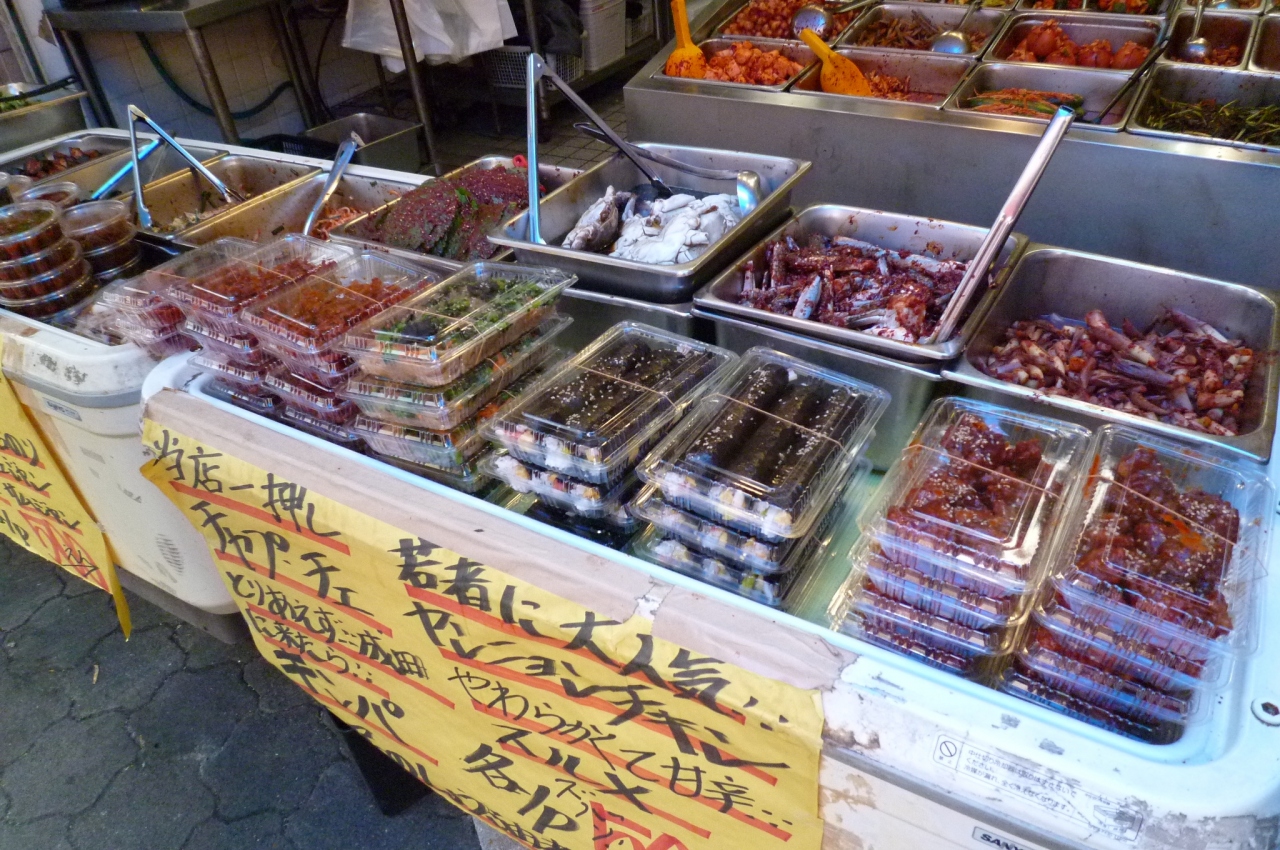 西日本最大のコリアタウンです。中華街のように、カラフルな門がいくつかあって韓国の明洞に迷い込んだよう。500m以上続く韓国商店街には圧倒されます。キムチ・トッポギ・キンパなど多種多彩な品が並ぶお店や韓国の飲食店がひしめき合っていて、どの店に入ったらよいか迷うほど。お店の人は元気よく商売に励んでいて、商店街はいつも賑やかです。日本人だけでなく外国人の観光客が多く、遠足などの学校行事で来ている小中学生も大勢見かけました。