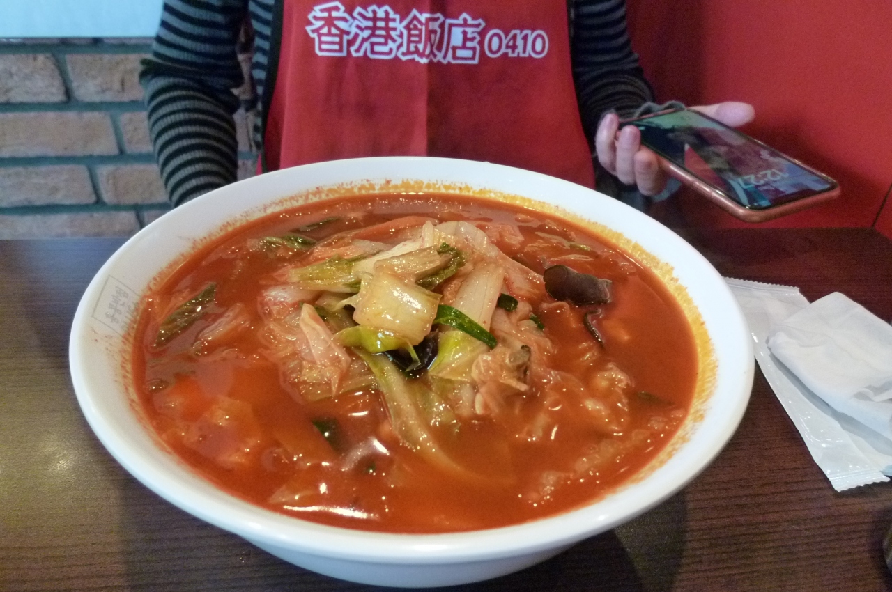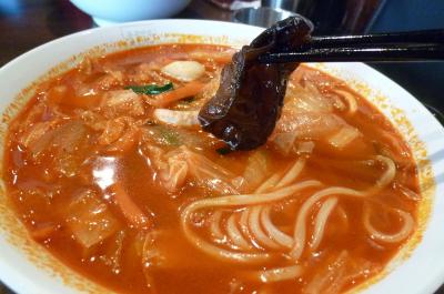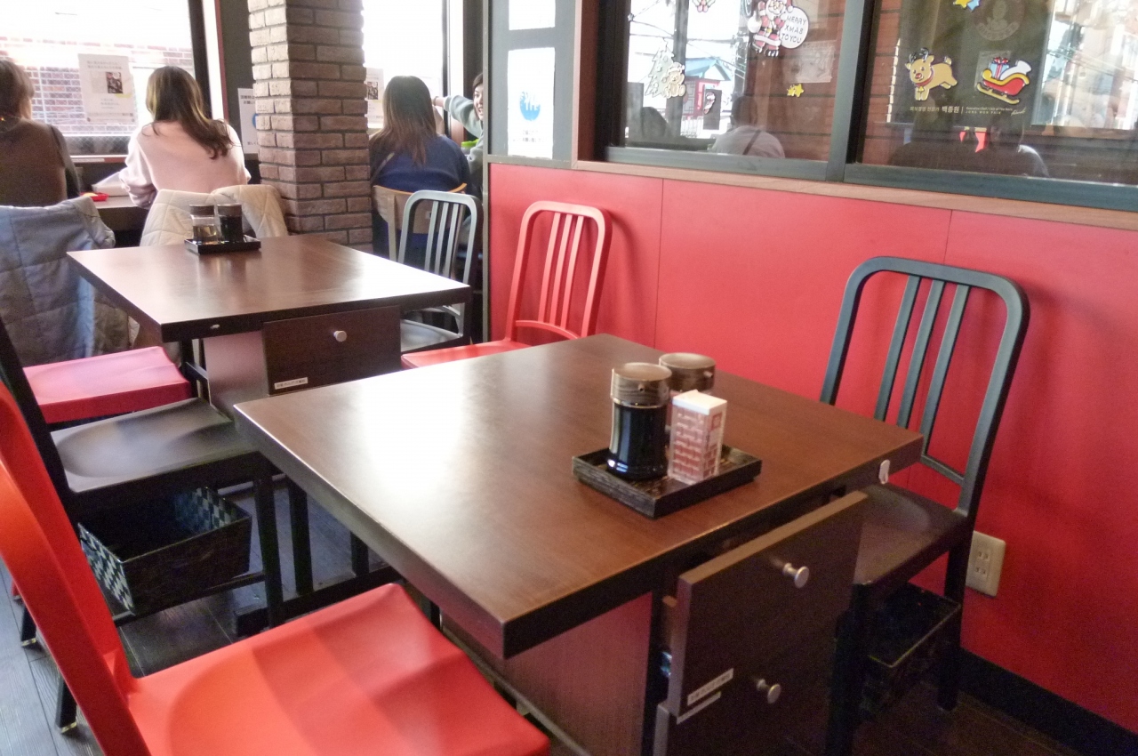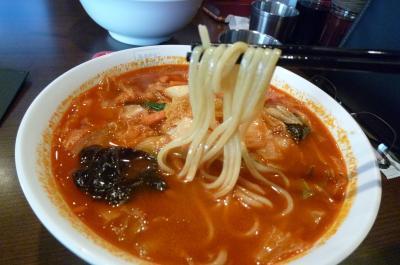 韓国風中華料理店です。お店はやや狭い階段を上がって二階へ。思ったより店内は広く感じる。テーブル席とソファー席があって、テーブルの横には何と引き出しがある。一瞬、何だろうと引き出しを開けてみたら、箸やレンゲ、ティッシュなどが入っていて納得。オーダーしたのはちゃんぽん。待つこと10分。スープは真っ赤。麺は中細麺で辛いスープによく絡む。具は白菜が多め、イカやきくらげも入っている。まさに韓国風ちゃんぽんだ。麺がなくなる頃には体全体が温まるよりも熱くなって汗もジワッと。ここで登場するのが引き出しに入っていたティッシュ。適度に拭くと爽快感が増してくる。ふーふーして食べた辛いちゃんぽんに満足。次回のオーダーは大皿チャジャン麺(海鮮焼きそば)や焼きちゃんぽんも食べてみたい。