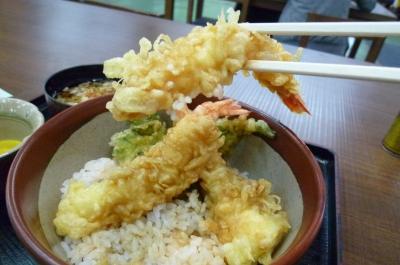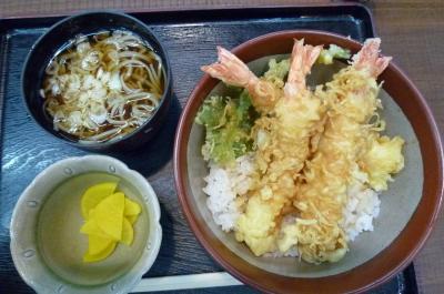 国道19号線沿いの道の駅で利用。お店の入り口横に立つ、藁でできたビッグな芦ノ尻道祖神が目印。オーダーは食券機でえび天丼わんこそば付きを購入。丼のご飯の上にえび天が3尾、ドドーンとのっています。サクサクの衣をまとった海老はプリップリッ!たれとの相性も良い。そばはいわゆる温かいミニそば。刻み葱がのったシンプルなそば。コシがあってのど越しもいい。コスパの高いメニューでした。