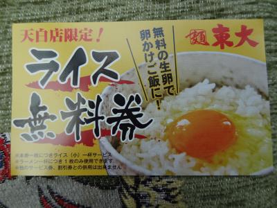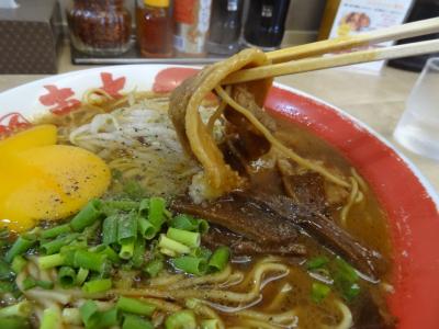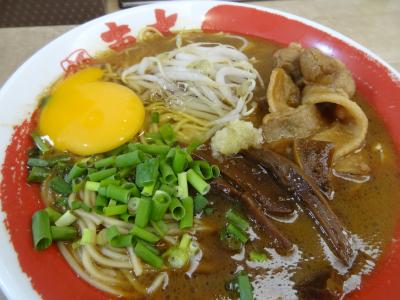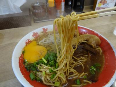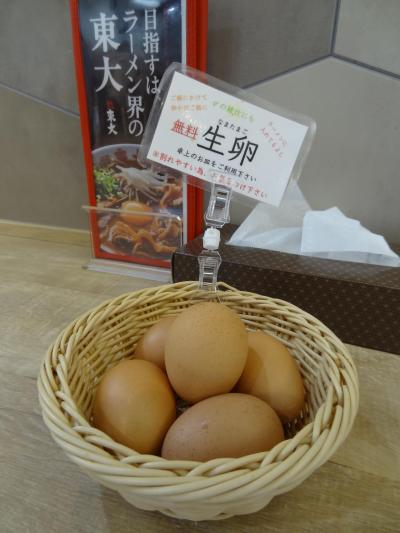 本場の徳島ラーメンを食べたことがあります。懐かしい味に出会えるかどうか期待しながらお店へ。駐車場のスペースはお店の正面側と横にもあり、平日なら停めやすいです。オーダーは発券機で食券を購入。徳島ラーメンの大盛(640円、安い)をオーダー。すかさず、店員さんがお一人を確認したら速やかにカウンター席へ案内。やや奥行きのあるテーブルなので、ゆったり感があります。何と!生卵が無料?! 一個だけでなく何個でも!徳島ではラーメンをおかず代わりにしてご飯も注文し、ラーメンに生卵をトッピングしてもいいし、ご飯にのっけてもいいんです。これはうれしいサービス。ラーメンに二個もトッピング。麺は細麺、スープは濃い茶系、味付けした肉・メンマ(4・5本)、もやしも入っています。ラー油とコショウをたっぷりかけて完食。スープまで飲み干しちゃいました。ごっつぁんした。帰り際にご飯の無料券までもらえました。次回は無料になる卵かけご飯をいただこう。
