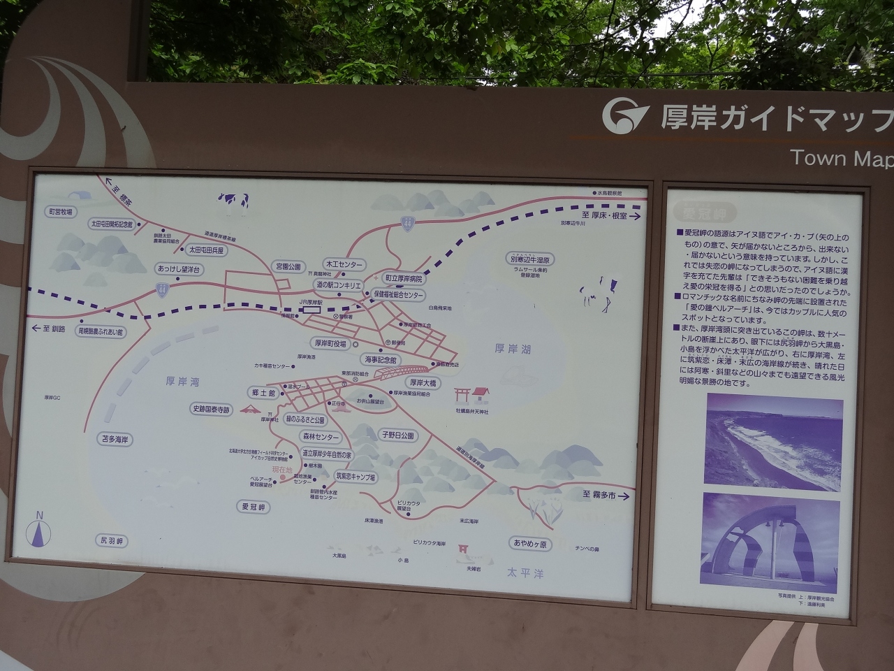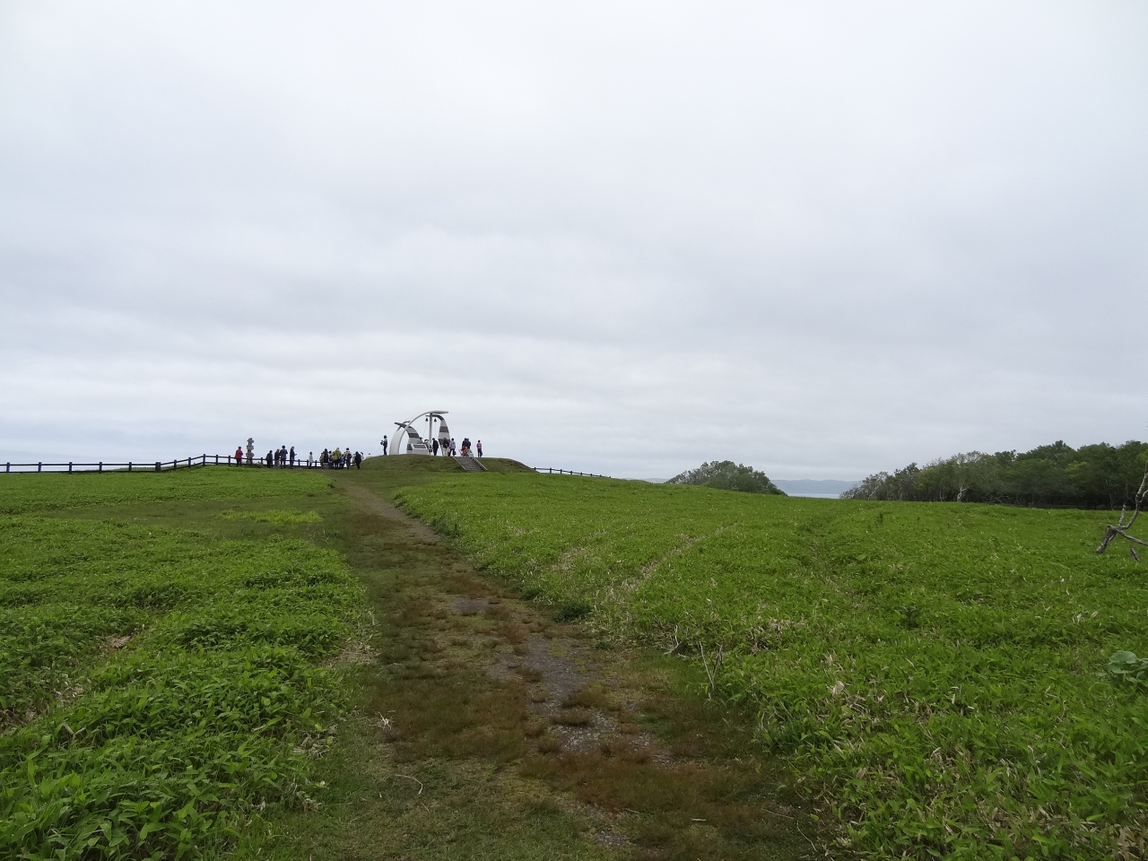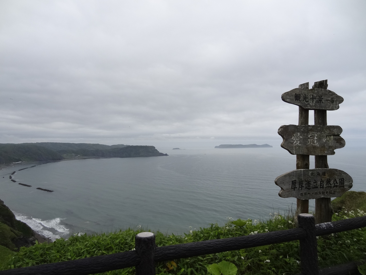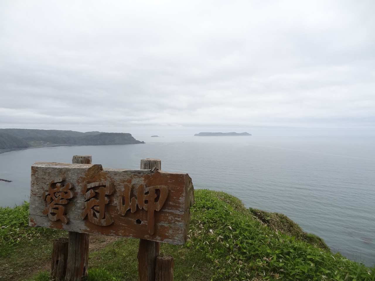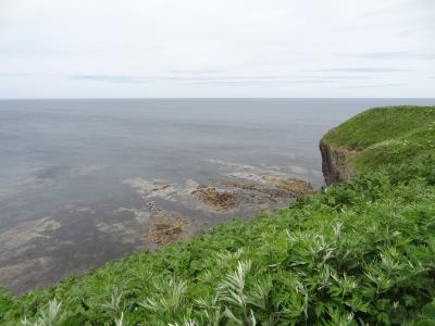 無料駐車場から岬まで徒歩で7分くらいかかります。遊歩道はまったく舗装されていなくて、所々ぬかるみもありました。歩きやすい靴に履き替えるといいでしょう。自然林の中を歩いて行く時、運よくエゾシカを見ることができました。遊歩道の脇には可愛い野花も咲いていて気分がウキウキとします。岬まで来ると、絶壁には緑色の笹が生い茂り、白い花がいいアクセントになっています。白い波が打ち寄せている景色が素晴らしいです。腰までの高さの柵が張りめぐされていて、愛冠岬と書かれた木製の古くなった看板が何本か立っています。真新しい看板よりは古いくらいのほうがこの岬の雰囲気によく合います。360度見渡せるパノラマ風景はまさに圧巻。岬の右側には鐘がある広場になっていて現代的なモニュメントも立っています。ここで願い事を祈れば恋愛が成就できそうです。