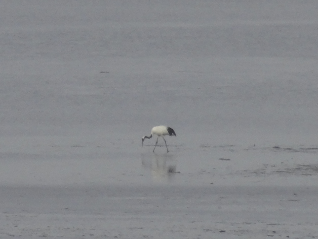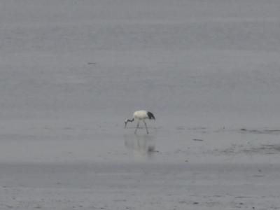 川湯温泉へ向かう途中、道の駅に立ち寄りました。道の駅の建物の中に展望広場があるので、ガラス越しに外を見ると大きな湖が広がっていました。曇っていましたが、向こう岸までかろうじて見ることができ、白鳥がいるか探してみました。右手奥に白鳥らしき鳥が。カメラを望遠にして見ると、何と!丹頂鶴ではないですか。実際にこの目で見たのは初めてです。カメラに収めることができてラッキーでした。
