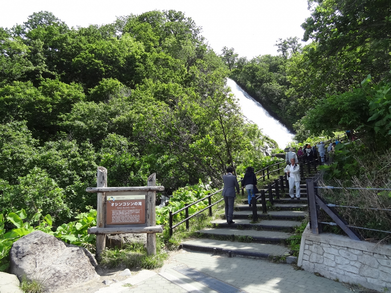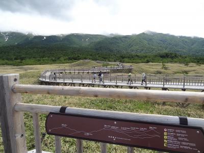 高架木道のおかげで快適に知床の二つの湖を巡ることができました。木道の脇下には電気柵が張られていて、こんな高さまでクマが上ってくるのかな?と驚きました。二湖(にこ)までの途中に二つの展望台があります。少し歩き疲れたら、この展望台で小休憩するのもいいです。ベンチも備えてあるので、知床連山(羅臼岳、硫黄山など)や知床岳、一湖と奥にある二湖の素晴らしい景色をゆっくり眺められます。さらに木道を進むと一湖の西側にある湖畔展望台へ行けます。ここの展望台はかなり広く造られていて、大勢の観光客が集合写真やツーショットを撮影していました。雄大な自然が目の目に広がっている景色に見とれていると、つい時間が過ぎるのを忘れてしまいそうでした。
