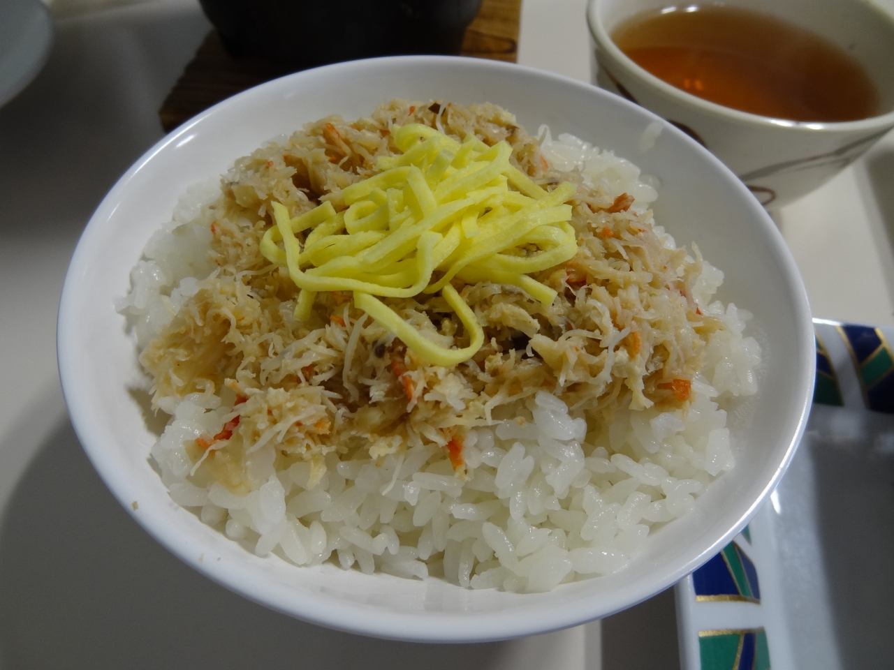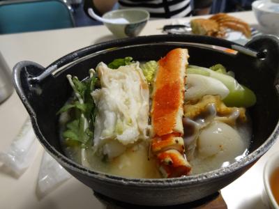 知床五湖の観光を終えて能取岬に向かう途中、このお店で昼食をいただきました。「毛ガニ半身付きタラバ鍋」のメニュー。毛ガニは丸々一杯でなくても、食べ応えは十分。店員さんが毛ガニを上手にさばいてくれて足の部分まで食べられました。毛ガニの旨みが身にしっかり詰まっていて、口の中いっぱいに広がります。タラバ鍋にはタラバの足はもちろん、大きくて身がポッコリとしたホタテが一個入っていました。この鍋もなかなかの味。極めつけはご飯の上にカニ身がたっぷり乗っかって、おまけに錦糸卵までかかっているではないですか。このカニ身ご飯は無茶苦茶美味しい。詳しく言葉で表現する言葉が見つからないほど。食後は、隣の海産物・お土産売り場へ。食事がすごく美味しかったので、私だけでなく同行の人達もものすごい勢いで海産物やお菓子をショッピング。メロンチョコレートなどの試食もあります。本当はカニをたくさん買ってほしかったと店の人は思っていたようでしたが、お土産の売れ行きが良かったからお店の人も満足かな?やっぱり、食事に満足して試食もあると、ついついお土産もたくさん買ってしまいます。さすがに、このお店は商売がうまいです。