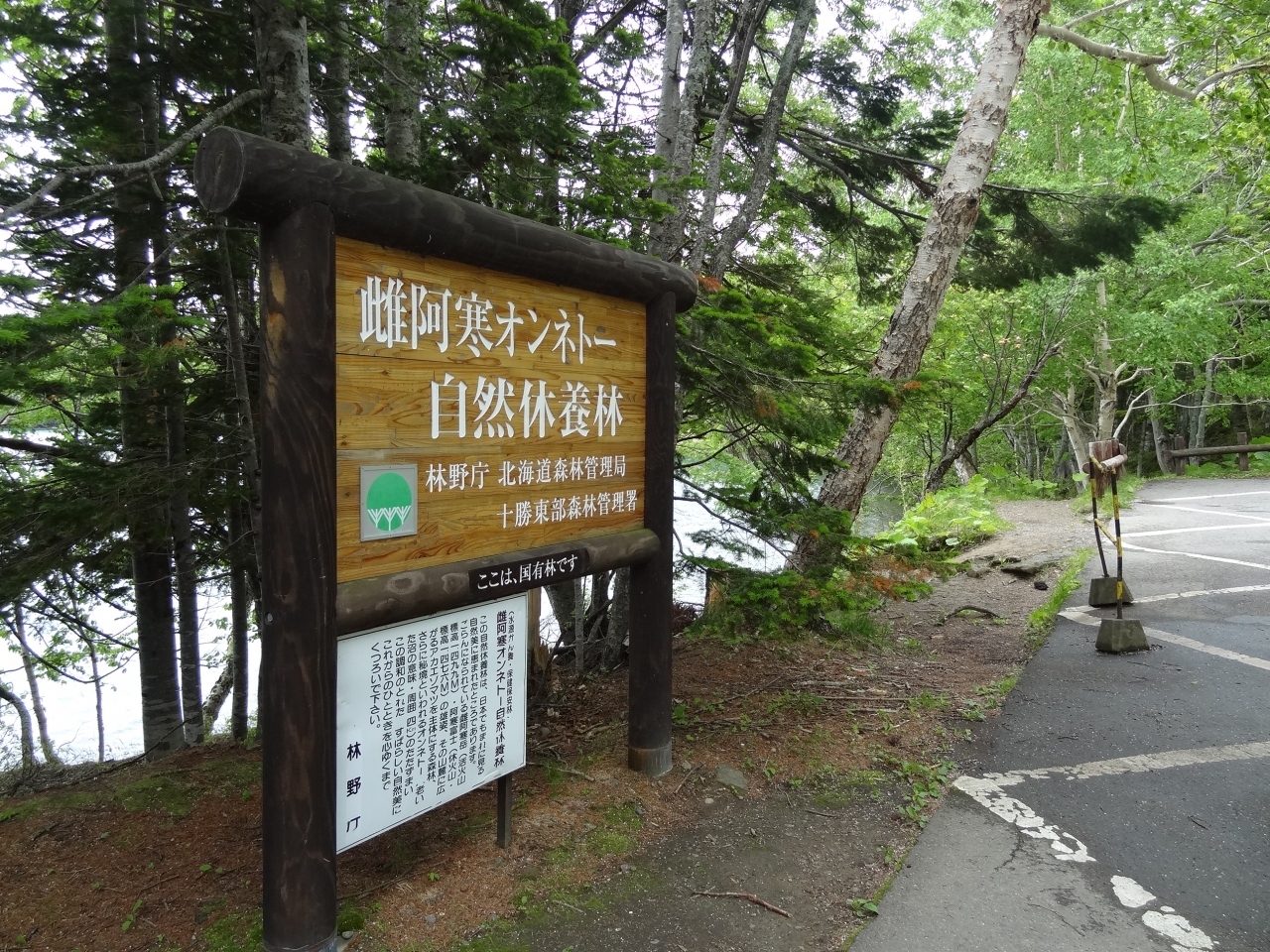 道路沿いにあって駐車するスペースも少しですが、気軽に立ち寄れて雌阿寒の美しい景色が楽しめます。展望台の周囲にはお土産店のようなものはなく、道路から少し上のほうにトイレがあります。オンネトーの案内看板がある展望台は、湖畔から湖上にせりだす形で板製のデッキ風になっていて、15名くらいは一度に景色を見られるスペースがあります。雌阿寒岳と阿寒富士が一望できる展望台が整備されていますから、記念写真撮影にはもってこいのスポットです。
