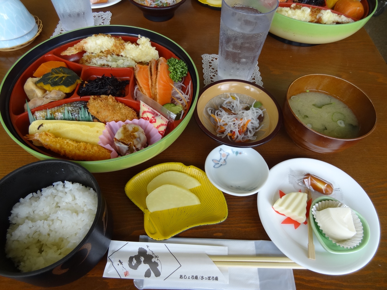 松山千春さんのふるさと足寄町にある道の駅風のレストランです。お店の右側には松山千春さんと一緒に記念写真が撮影できるベンチもあります。て店内は広くて団体客専用のテーブル席があります。料理は幕の内風で、いろいろなおかずが丸い食器の中に所狭しと入っています。いろいろな味が楽しめて美味しかったです。このお店ではチーズが有名らしく、料理の右側には3種類のチーズが並んでいました。このチーズもサービスとは言え、なかなかの味で満足できました。