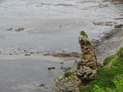 網走に向かう途中、この能取岬に立ち寄りました。駐車場から海岸まで徒歩で3分ほど。白と黒に塗装された灯台がパンダのようで面白い。遊歩道を通って海岸まで来ると、絶壁の下に広がる遠浅は岩肌の茶色が見えて独特な景観を見せています。15mほどある岩の柱が海岸に立つ景色も素晴らしいです。オホーツク海に浮かぶ知床半島の眺望は圧巻です。