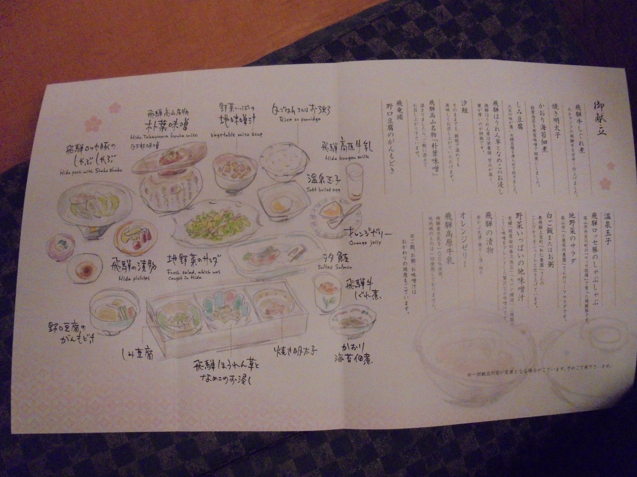 宿泊時の朝食で利用しました。店内は落ち着きがあり、美しい庭園も望めます。スタッフさんの接客レベルが高く、親切丁寧なおもてなしに癒されます。卓上には品書きとイラストメニューがあるので、料理の内容がわかりやすい。ブッフェ式でなくセットメニューなので、健康にもいいし胃にも優しい。朝食で飛騨ロッセ豚のしゃぶしゃぶは珍しい。飛騨郷土色豊かなほうば味噌、岩海苔、がんもどき、焼き明太子など、多種多彩なメニュー。ドリンクは飛騨のトマトジュース、味は濃厚で極上の味わい。ご飯がとても美味しくて、お代わりまでしてしまいました。