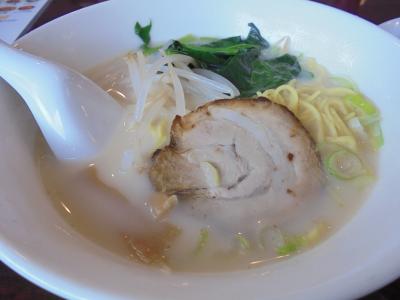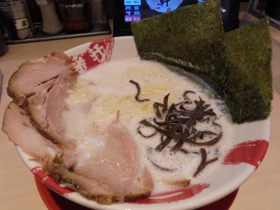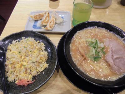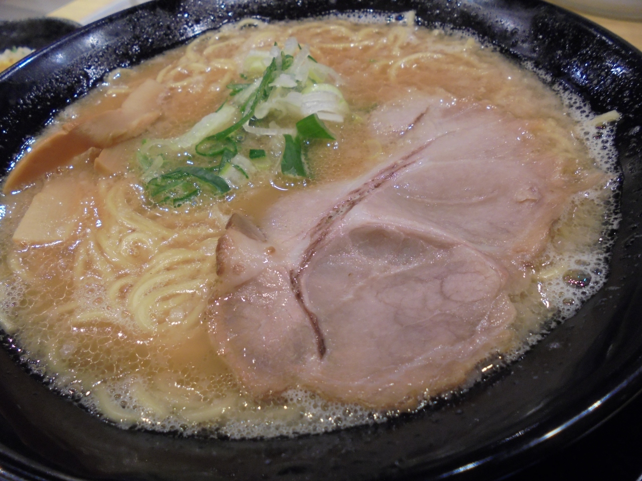 駐車場の台数が多いチェーン系列のラーメン専門店です。厨房側にあるカウンター席と向かい合わせのカウンター席、窓側にテーブル席があります。オーダーは卓上のタブレットで。高菜と紅生姜は食べ放題サービス。ラーメンとチャーハンセットをオーダー。タブレットでトッピングや麺の硬さなどが選べるのもいい。ラーメンの麺は細麺、白いスープに海苔2枚とチャシュー3枚。ズバリ、味がいい。きれいにスープまで飲み干してしまった。上手に調理されたチャーハンは、味のバランスが取れたパラパラご飯。実にコスパのいいラーメンとチャーハンでした。