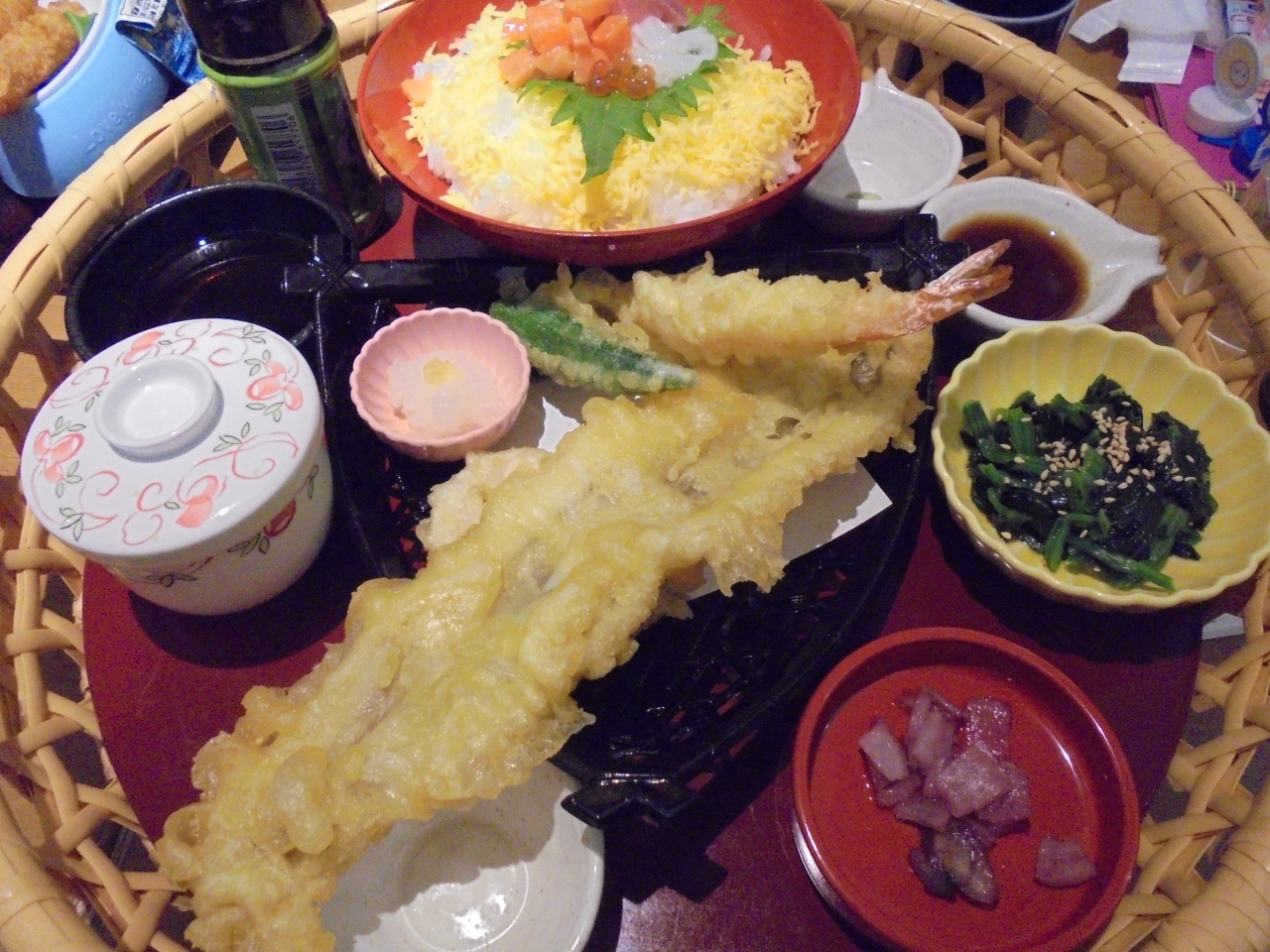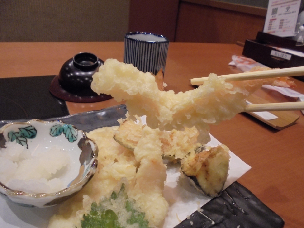 家族で久しぶりに入店しました。店内は和モダンな雰囲気でBGMは琴の音、ゆっくり食事ができそうです。テーブルサービスがある中で、水•お茶はセルフ式です。オーダーしたのは、お昼の丼小麺¥880税込。丼ものはご飯大盛りの天丼、小ざるそばを選択。組み合わせが何通りもあるのが嬉しい。ざるそばは細平麺、コシがあって美味しい。天丼はいろいろな天ぷらが大盛りのご飯の上に乗っているから、実にボリューミー。天ぷらの王道、キスから始まって、レンコン、海老、とり天、など多種多彩だ。味のバランスが取れたこのランチはコスパがいい。会計時に五百円以上の料理に対して、一人一枚の四六手形(クーポン)がもらえるのも嬉しいサービスです。