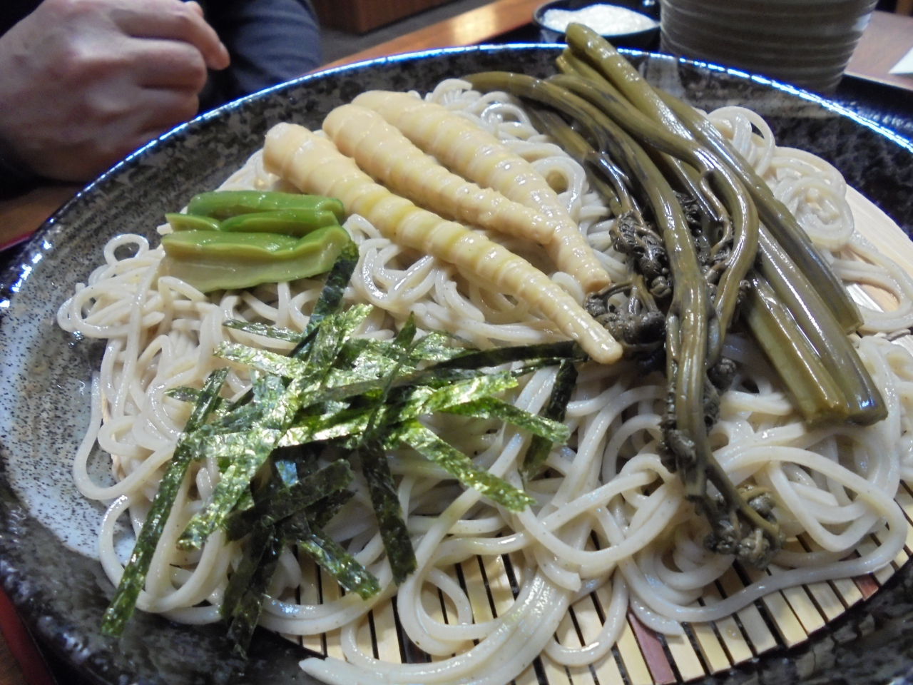 飛騨高山の上三之町にあって、古い町並みにぴったりのお店です。天井が高い部分が吹き抜けのよう。テーブル席と小上がりの座敷があって、落ち着いて食事ができる雰囲気です。天ぷらざるそばをオーダー。そばは細麺で、そばつゆとの相性が抜群。つゆとそばがよく絡んで、のど越しもすこぶるいい。天ぷらの揚げ加減がちょうどよく、サクサク感が味わえて美味しいです。美味しい蕎麦を食べるなら、ここのお店をおススメします。