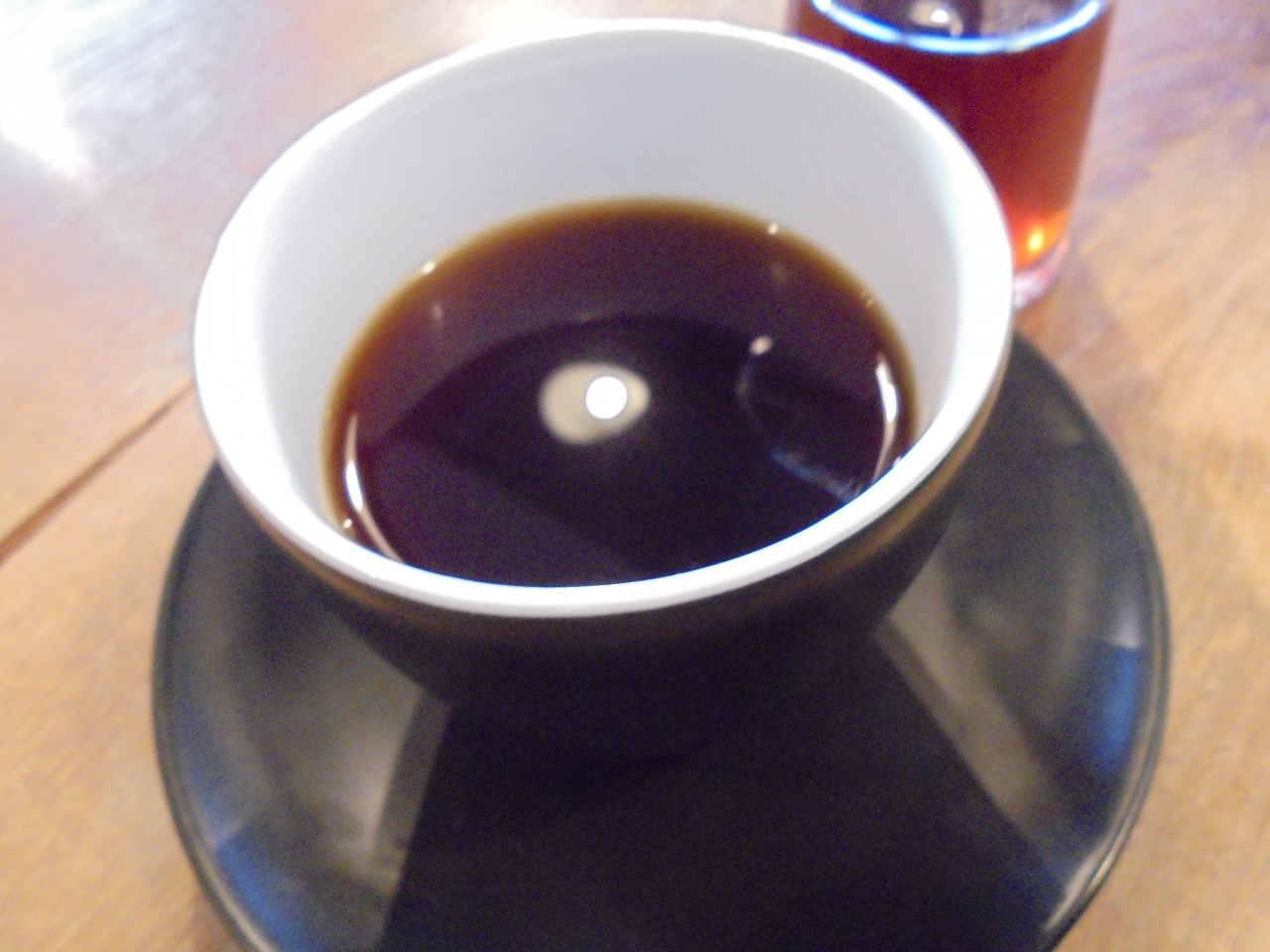 フレスポ飛騨高山にあるカフェです。お店の建物側にテラス席もあります。店内はハイモダンで開放的。静かなBGMが流れて落ち着ける雰囲気。テーブル席と小上がりの座敷もあります。フリーWi-Fiもあってスマフォ操作も快適。ハンドドリップコーヒーをオーダー。あとで教えてもらいましたが、豆はコロンビア豆。飲みやすい濃さで少し酸味が感じられます。カップは取っ手がないです。目の錯覚かと勘違いするほど。