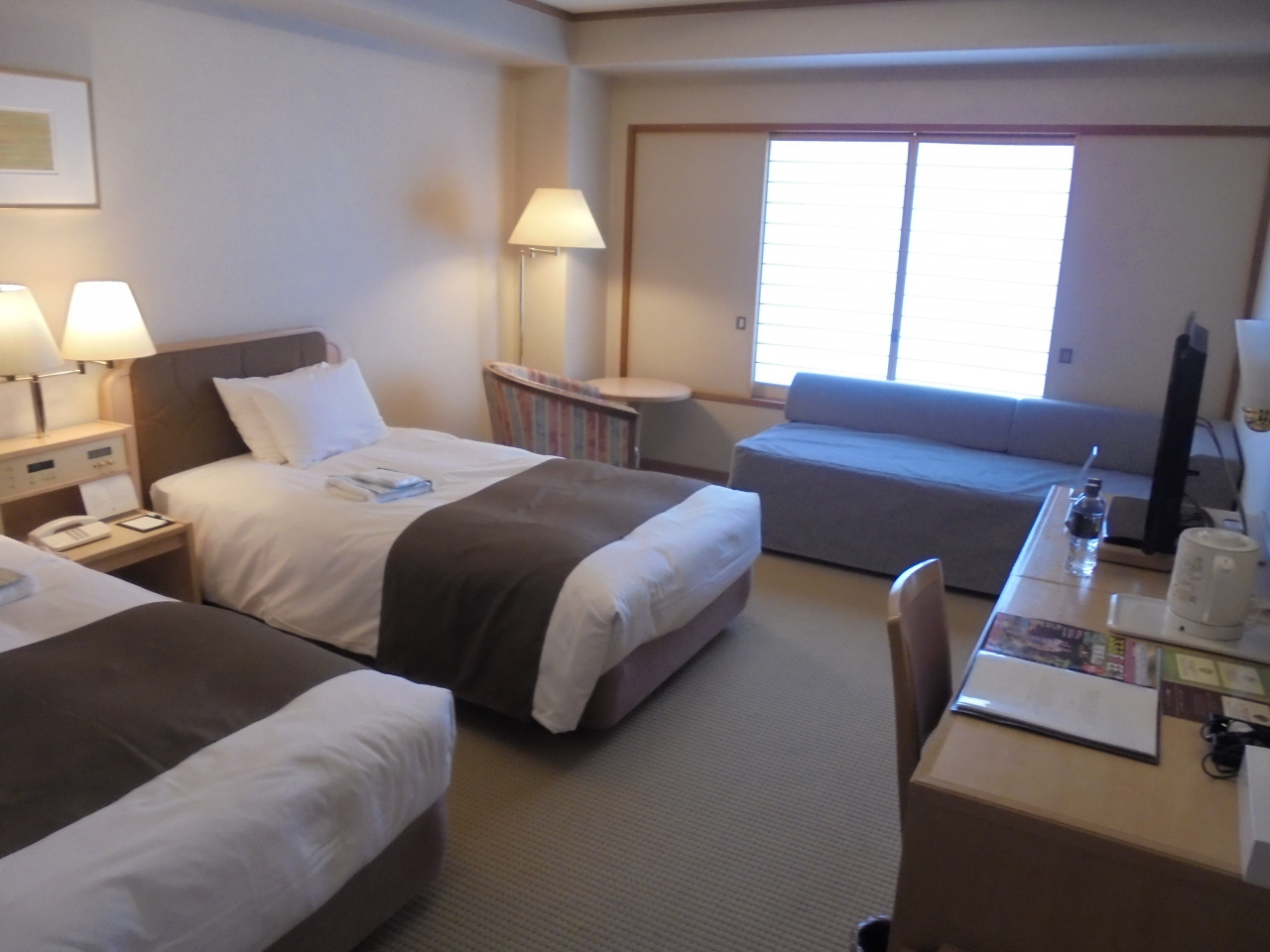 おまかせプランの二食付きで宿泊。天領閣八階(最上階)のツイン、部屋タイプはおまかせでも満足できる部屋でした。天井は間接照明で目にも優しい。部屋の設備は満足レベルだが、ベッドサイドテーブルにコンセントがあれば、もっと理想的。ブッフェ式の夕食は、メニューの味・種類・レベルがとても高い。プレミアムのアルコール飲み放題も、ウイスキー・ワインなどのレベルが高く、満足できました。朝食は別の食事会場でセットメニュー。早春の小雪が中庭にチラチラ舞う幻想的な雪景色を眺めながら、美味しい朝食をいただけました。温泉大浴場と自然石を配して緩やかにカーブを描く露天風呂も最高でした。