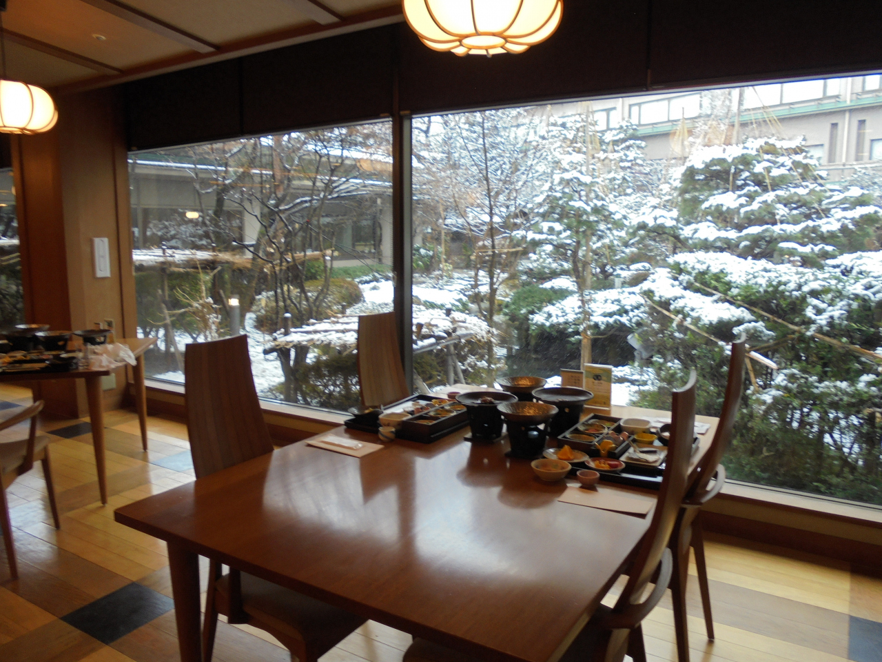 2年前にも利用した和風レストランで、セットメニューの朝食をいただきました。どの料理も繊細な味わい、器にも高級感があって目で見るだけでも楽しい。スタッフのかたの接客レベルが高くてテーブルサービスにも満足できました。品書きには料理のイラストが描かれていてわかりやすかったです。未明からの小雪が中庭にも舞って、幻想的な雪景色を眺めながら朝食を堪能しました。